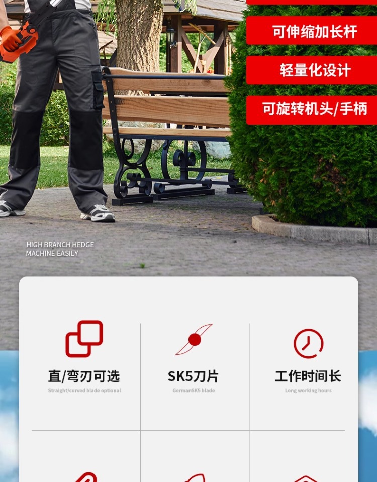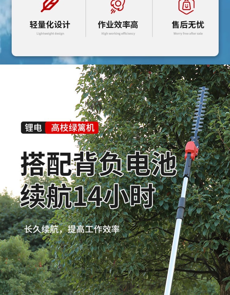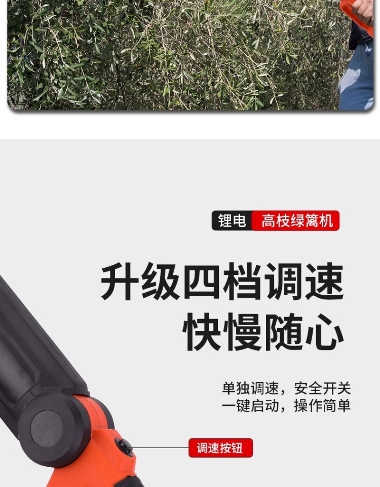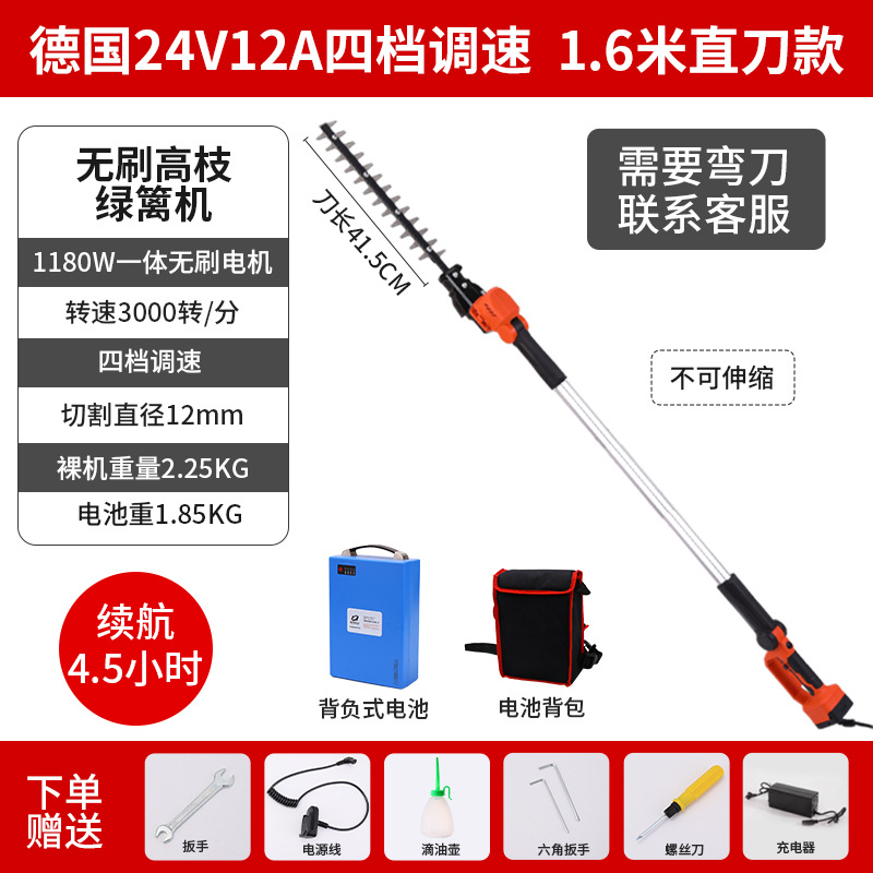 • 독일 24V12A 브러시리스 하이 브랜치 헤지 트리머 4단 속도 조절 3.6m 5시간