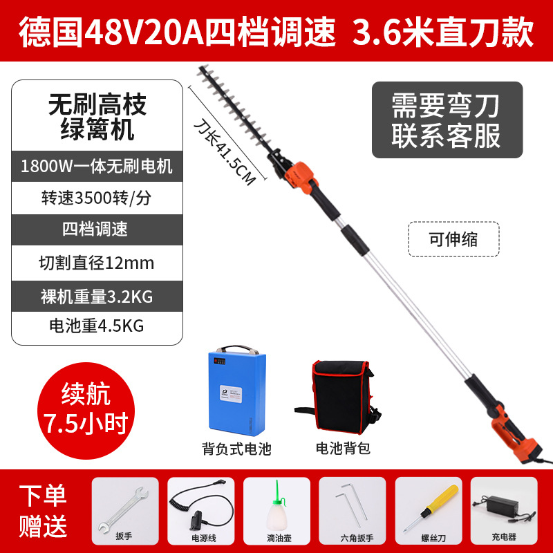 • 독일 48V12A 브러시리스 하이 브랜치 헤지 트리머 4단 속도 조절 3.6m 5시간