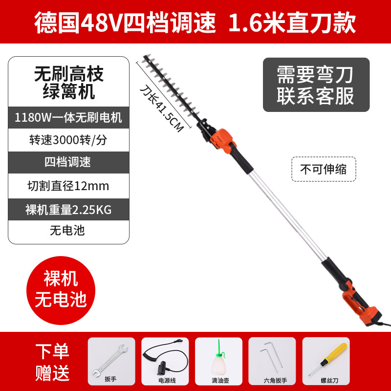 • 독일 48v 브러시리스 하이 브랜치 헤지 트리머 4단 속도 조절 1.6m 배터리가 없는 베어 메탈