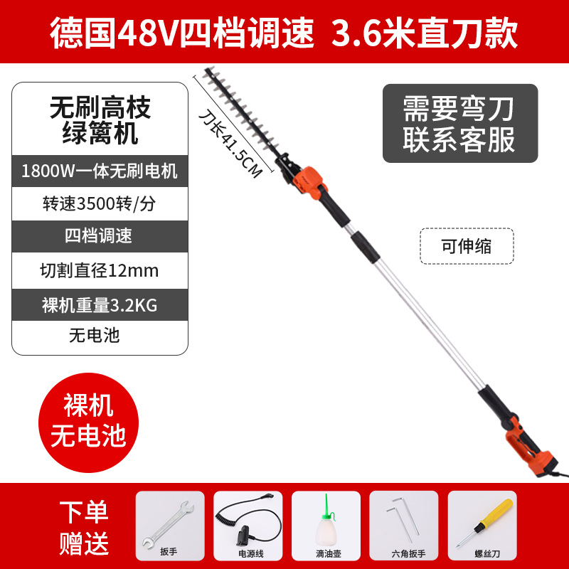 • 독일 48v 브러시리스 하이 브랜치 헤지 트리머 4단 속도 조절 3m 베어 메탈 배터리 없음 접이식