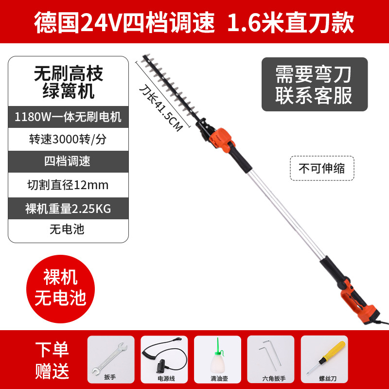 • 독일 24v 브러시리스 하이 브랜치 헤지 트리머 4단 속도 조절 1.6m 배터리가 없는 베어 메탈
