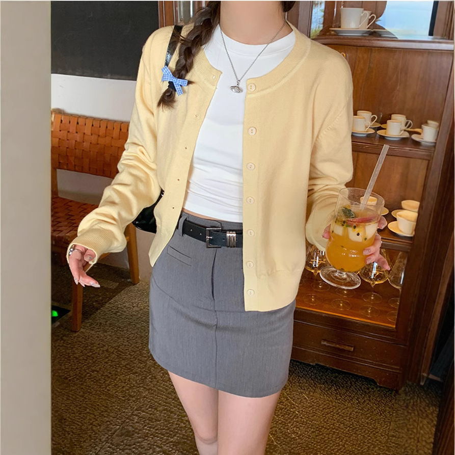 니트 스웨터 코트 카디건 여성 가을 인기 2025 새로운 노란색 코트 얇은 봄과 가을 스웨터 느슨한스토어 가기