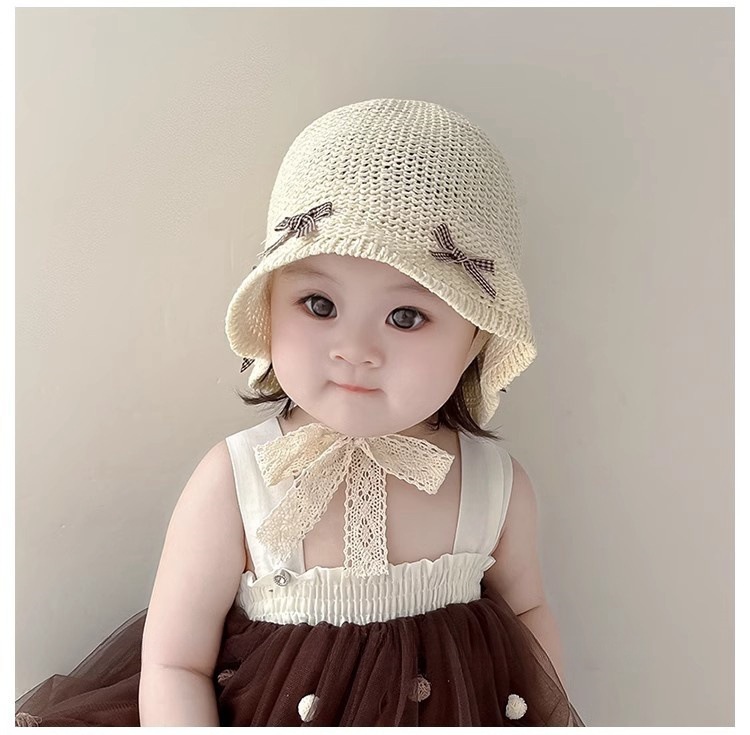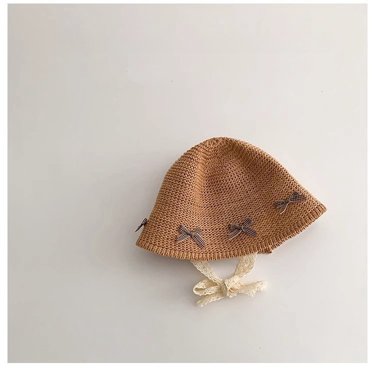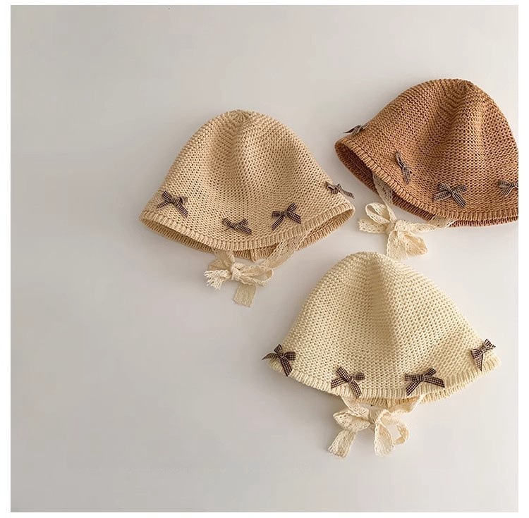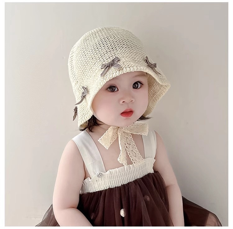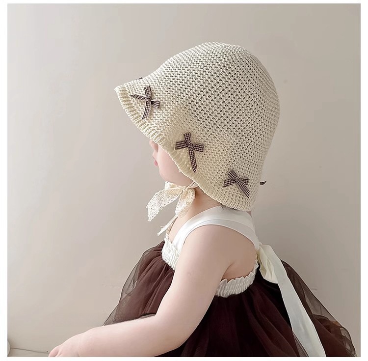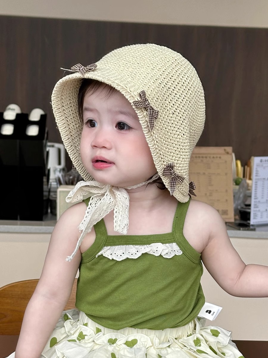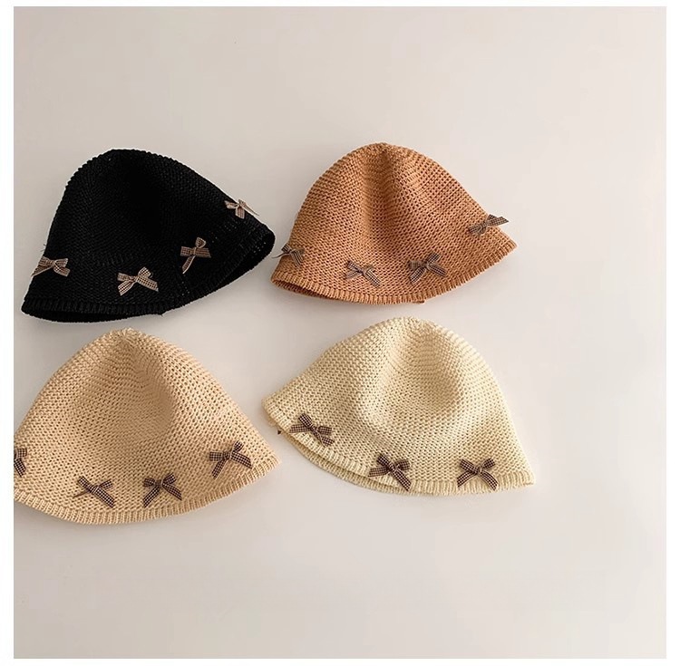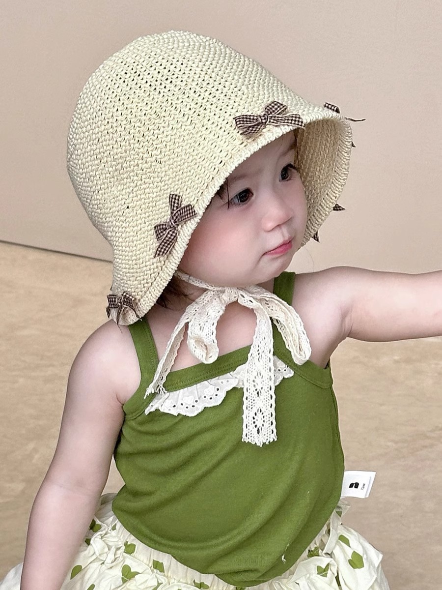 한국식 어린이 여름 양산 밀짚 모자, 여아용 세련된 리본 어부 모자, 여아용 자외선 차단 해변 통기성 모자