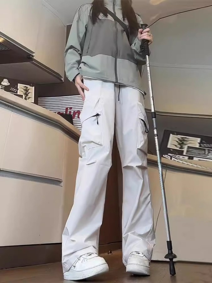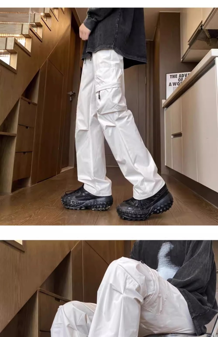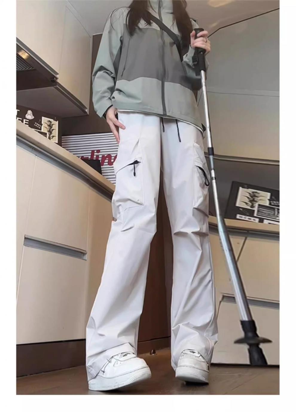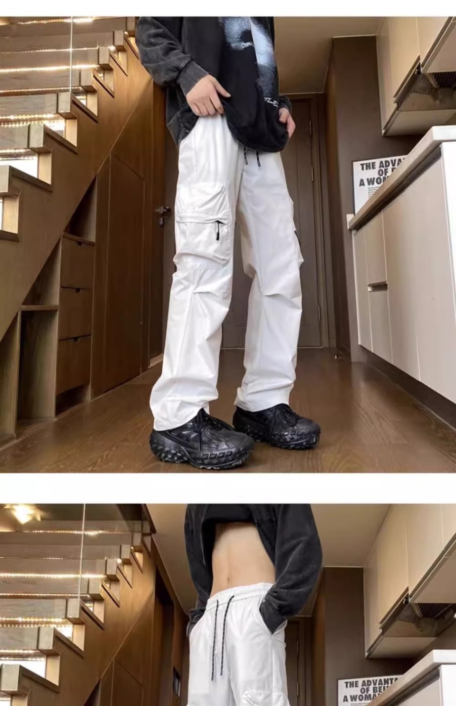 여름용 남성용 화이트 아메리칸 기능성 작업복 얇은 속건성 방수 충전 바지 루즈한 야외 하이킹 바지