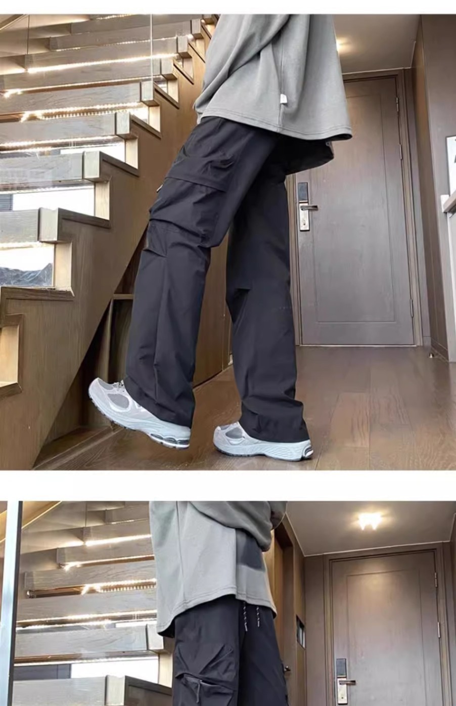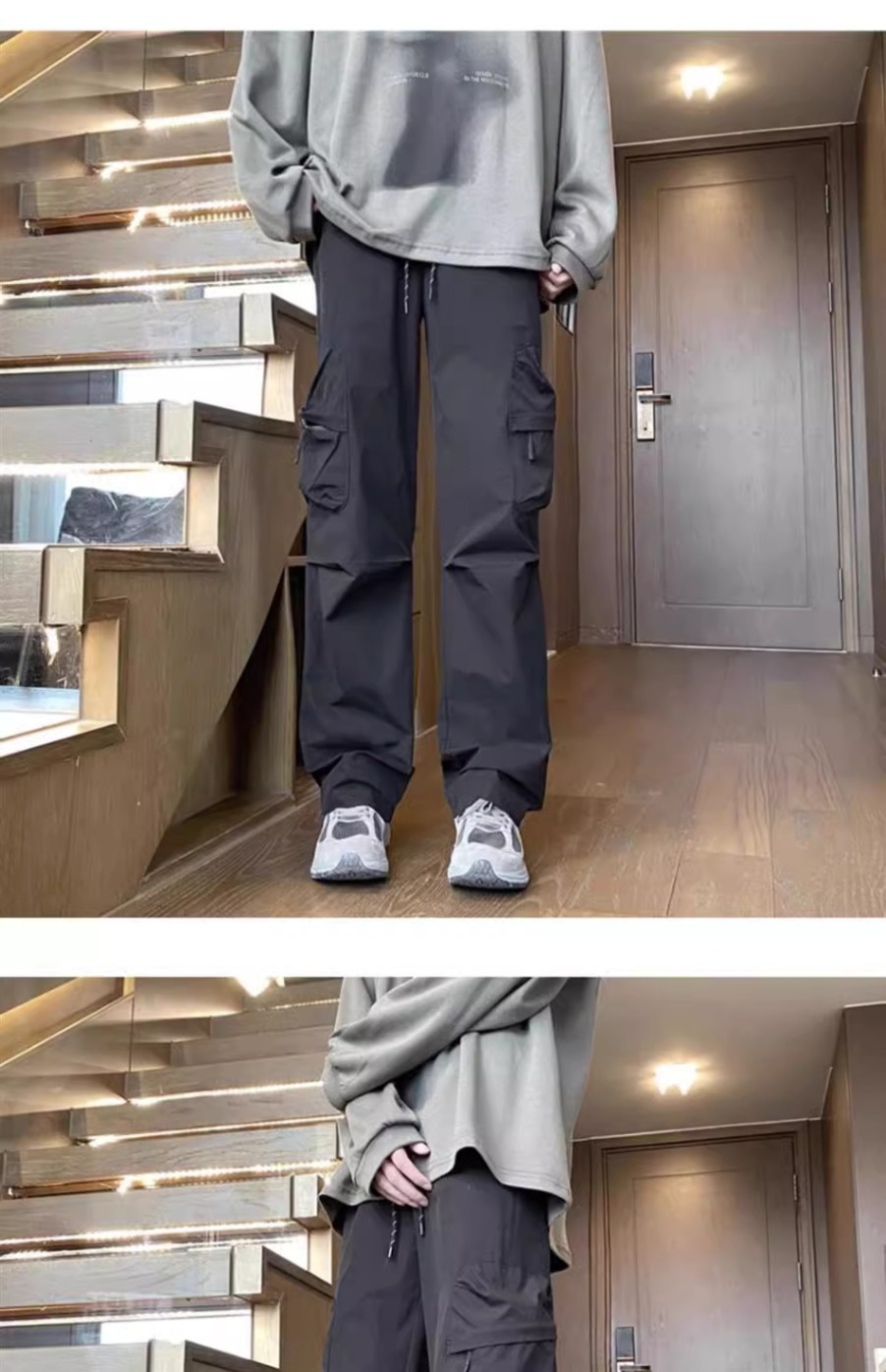 여름용 남성용 화이트 아메리칸 기능성 작업복 얇은 속건성 방수 충전 바지 루즈한 야외 하이킹 바지스토어 가기