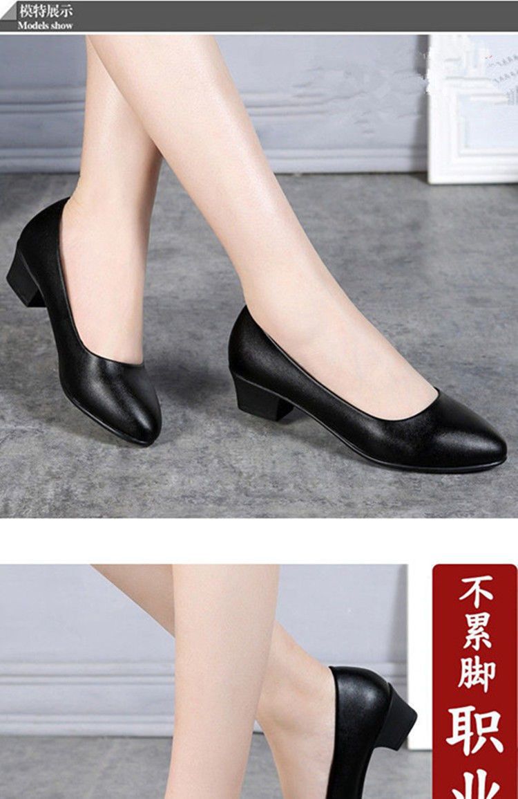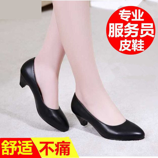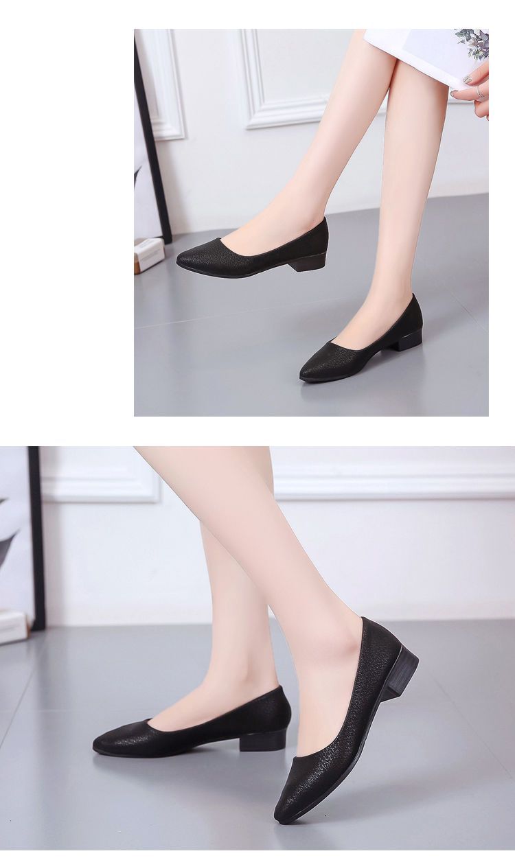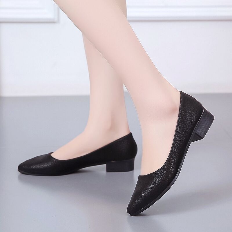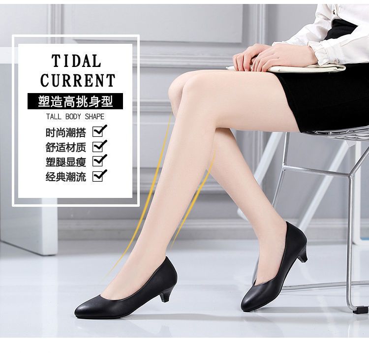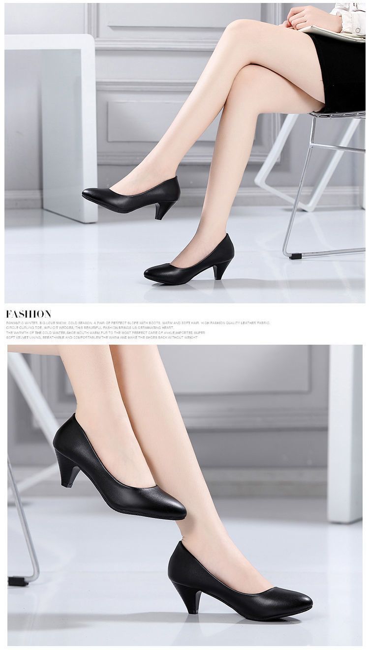 진짜 부드러운 가죽 뾰족한 두꺼운 힐 신발 여성의 봄과 가을 검은 통근 하이힐 여성용 얕은 입 미들 전문 작업 신발스토어 가기