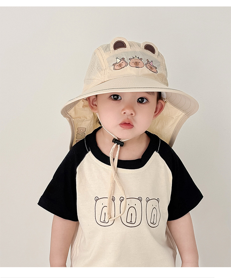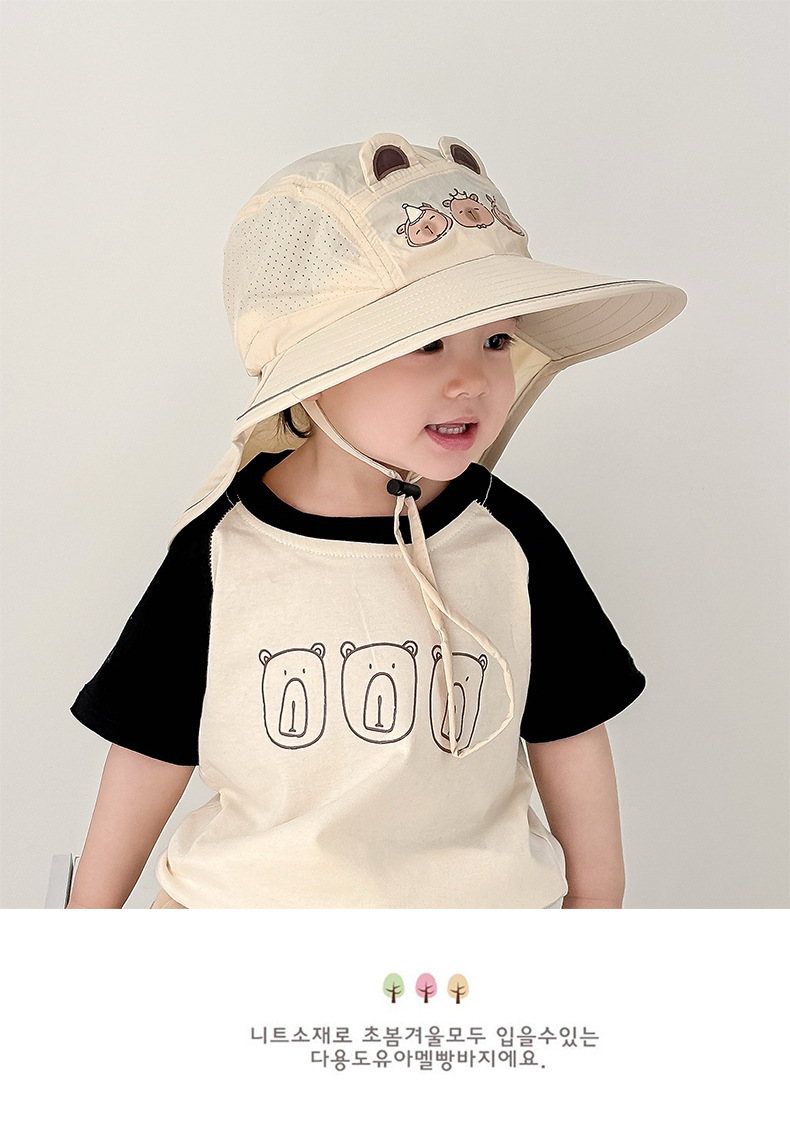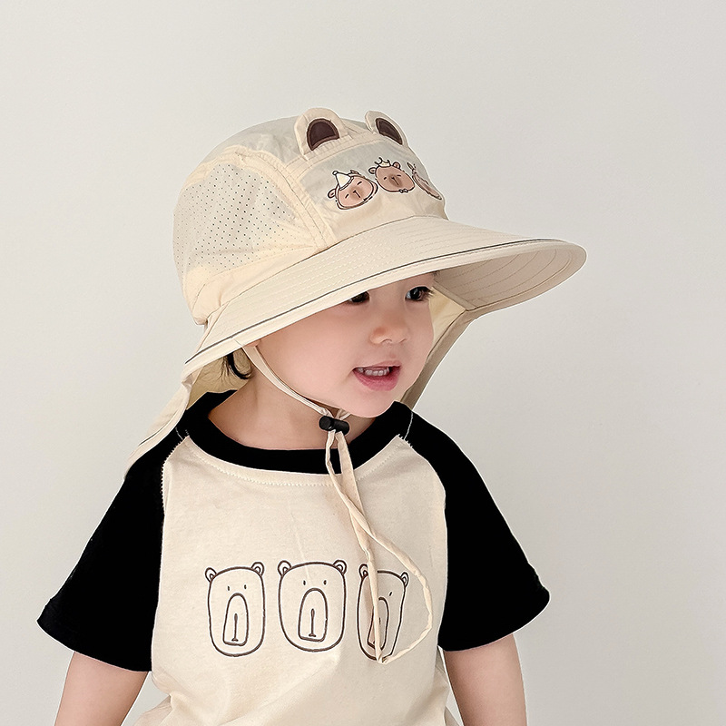 아기 선 스크린 모자 여름 얇은 아기 차양 모자 어린이와 소년 UV 보호 목 보호 태양 목도리 모자스토어 가기