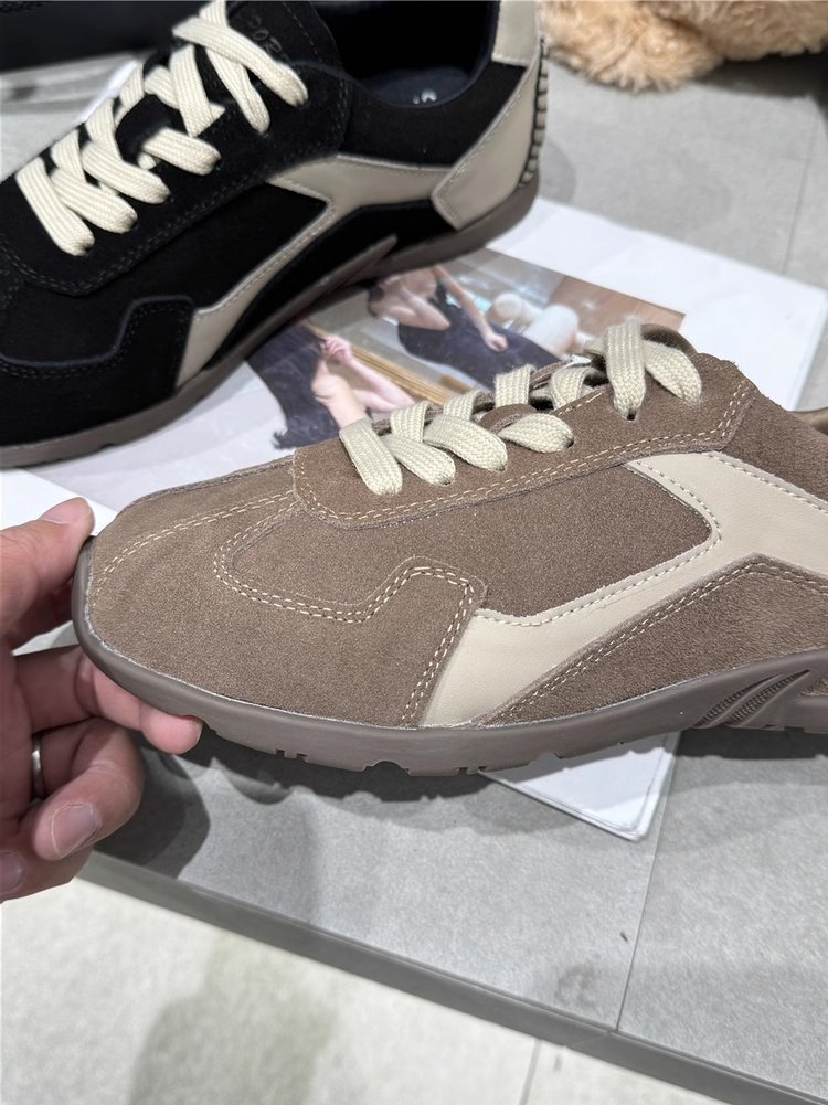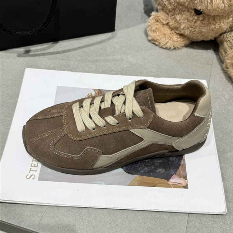 봄 2025 새로운 소프트 하단 컬러 매칭 프로스트 가죽 편안한 올 매치 레이스 업 레트로 플랫 슈즈 캐주얼 운동화스토어 가기