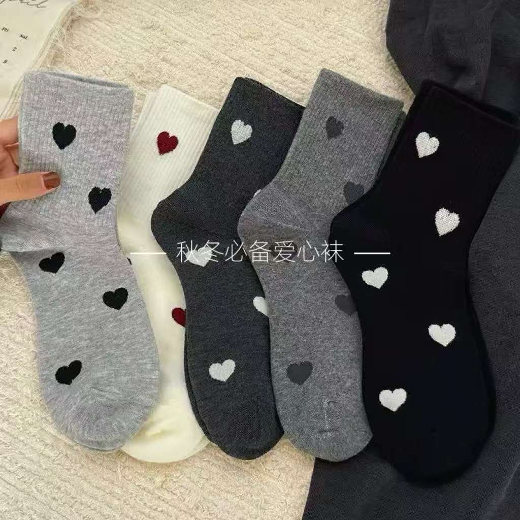 [전체 순 저렴한 가격] 높은 색상 가치 사랑 양말 어린이 중반 배럴 가을과 겨울에 조수 올 매치 그레이 여성용 스타킹스토어 가기