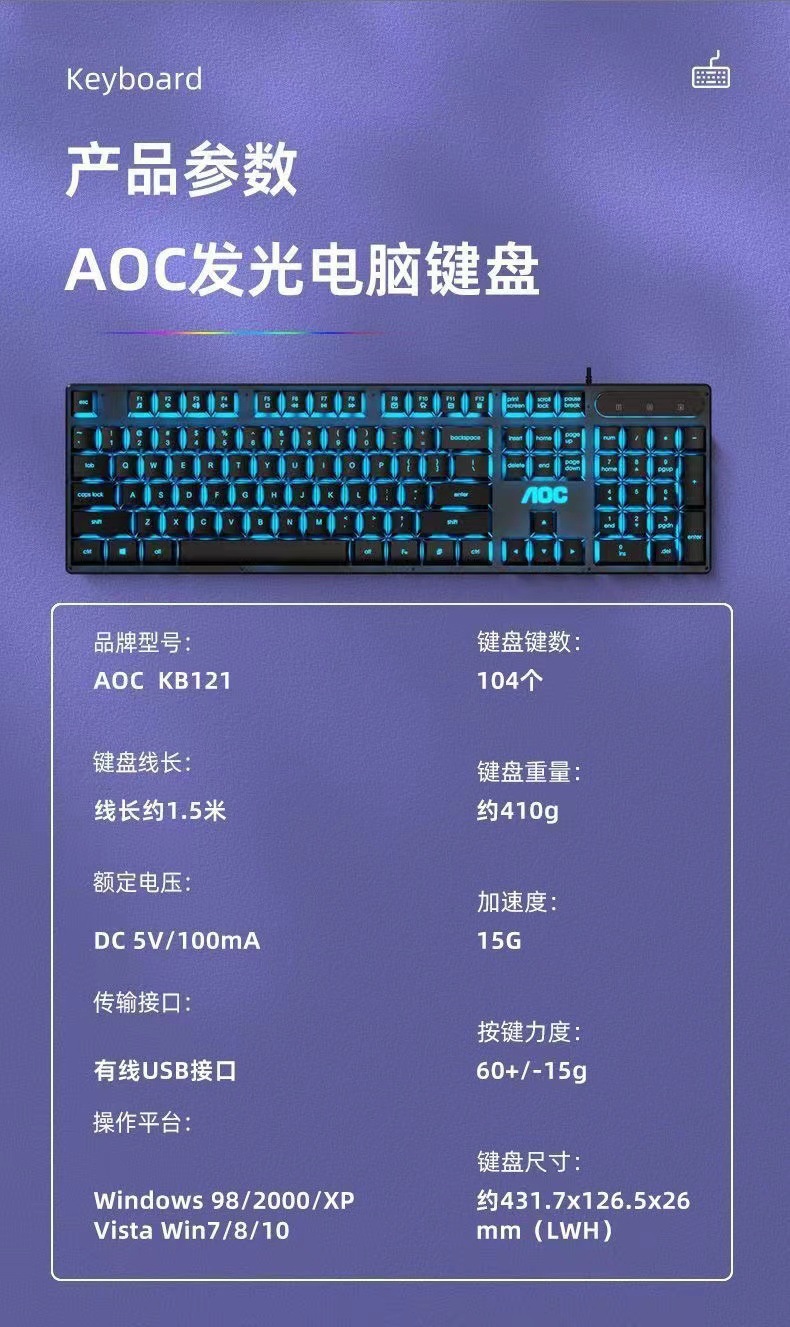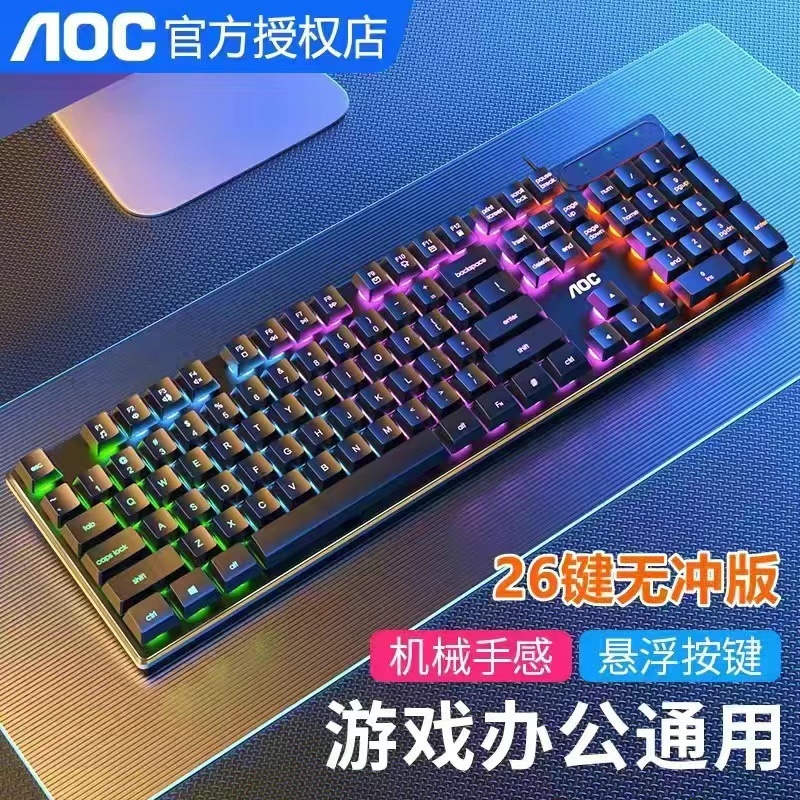 AOC 빛나는 기계적 느낌 키보드 USB 유선 데스크탑 컴퓨터 노트북 외부 사무실 게임 키보드