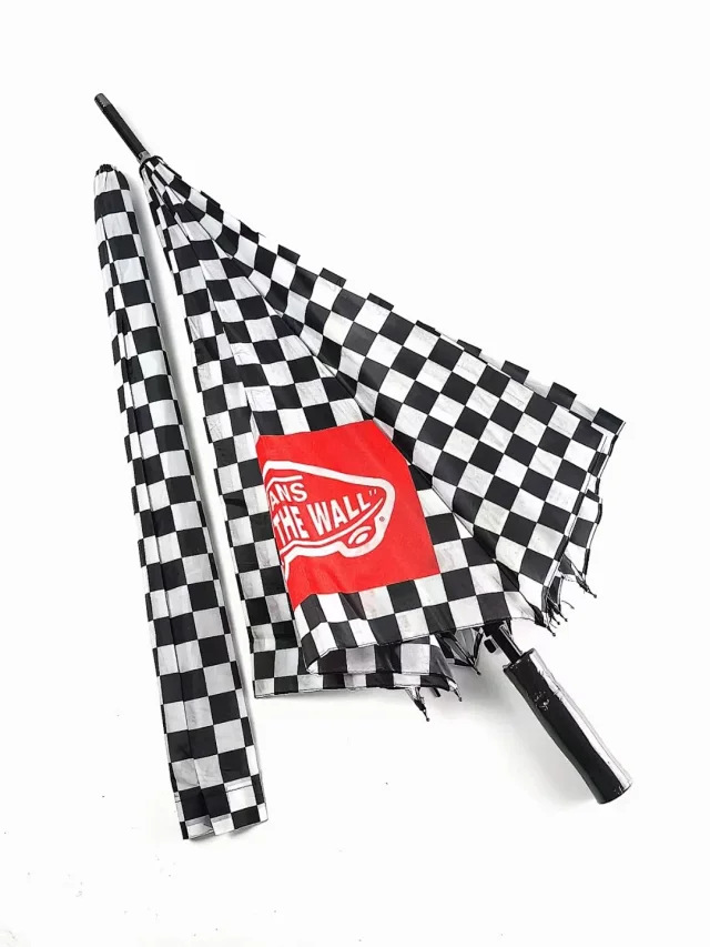 V@NS Vans 50주년 기념 반자동 롱 핸들 ‬ 우산 체커보드 우산 야외 파라솔