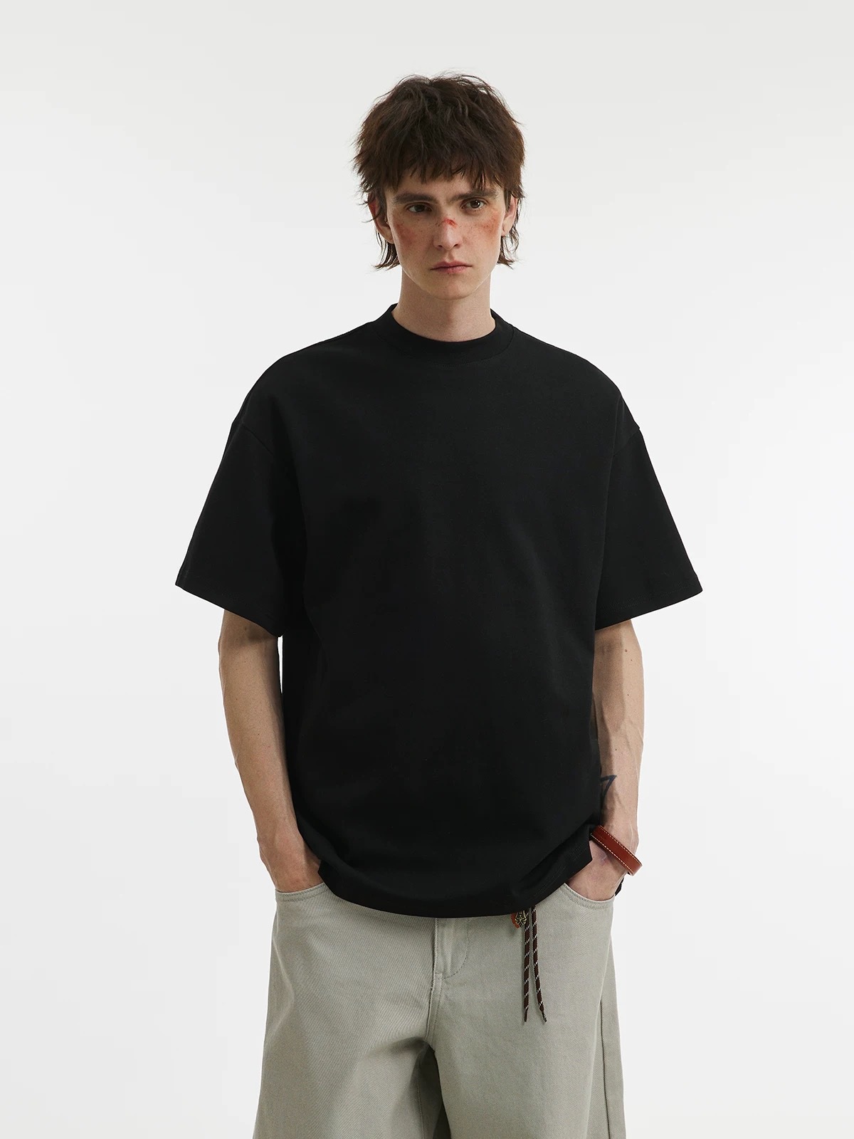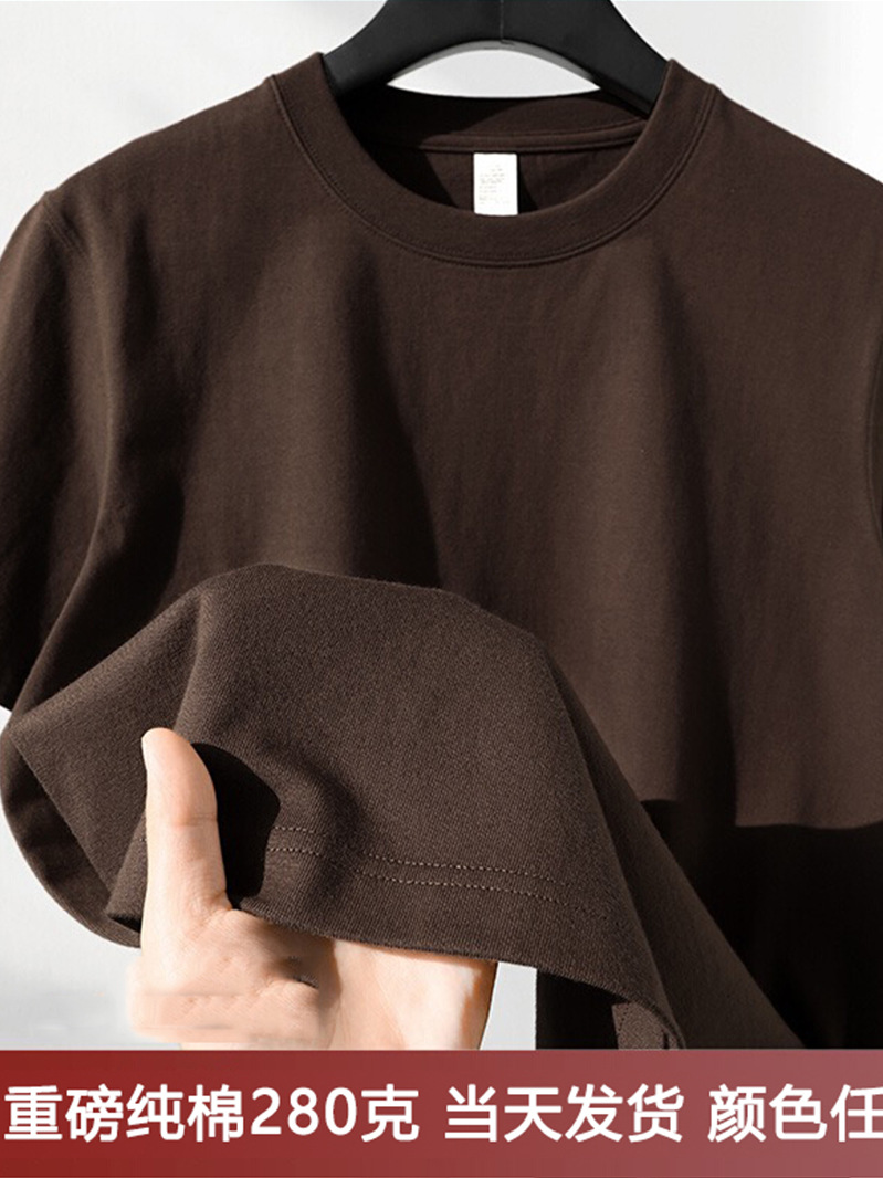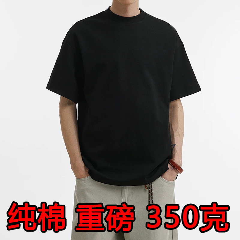 280g 헤비급 순수 코튼 라운드 넥 흑백 솔리드 컬러 반팔 일본 남성 및 여성 티셔츠 커플 착용 소년 티셔츠 바닥 셔츠스토어 가기