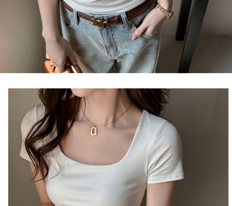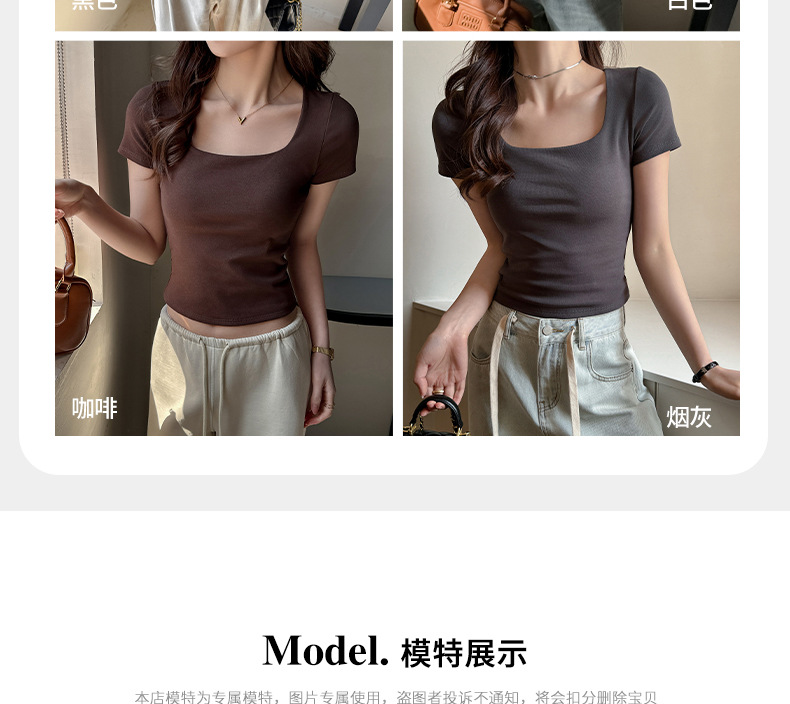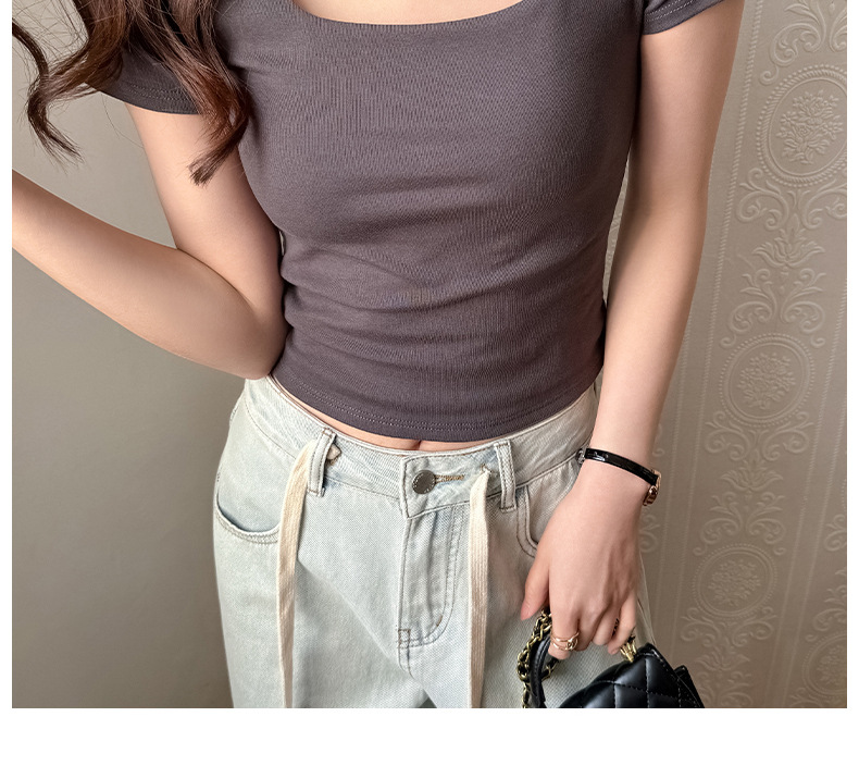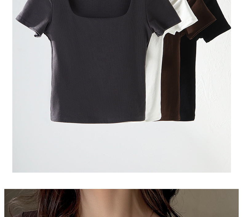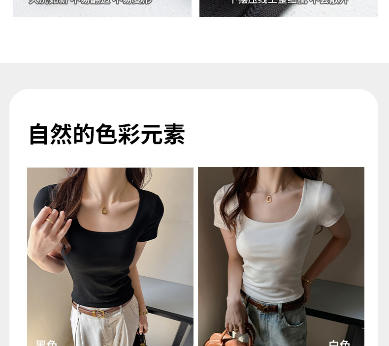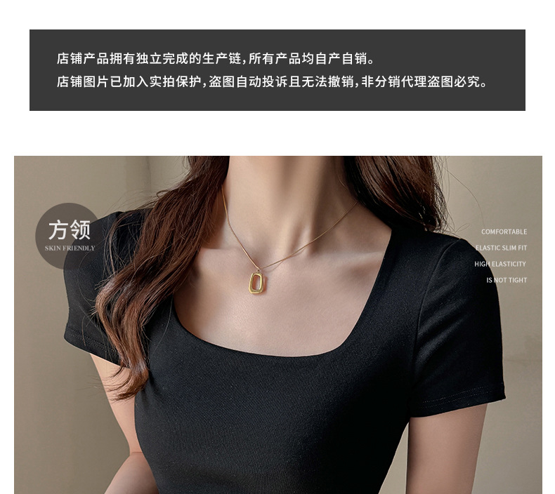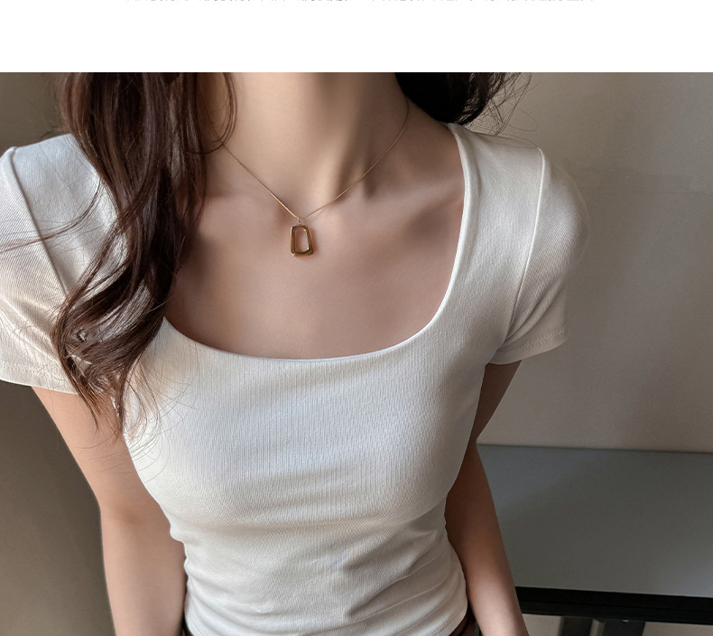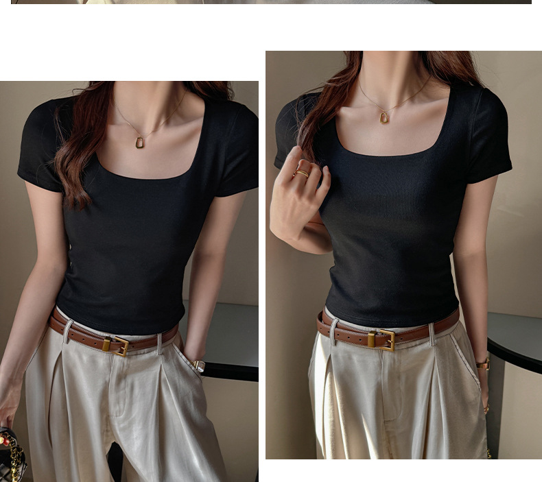 한국식 퓨어 코튼 스퀘어 칼라 내베이스 셔츠 어깨 반팔 티셔츠 여성용 스파이스 걸 패션 하이 엔드 슬림 핏 탑스토어 가기