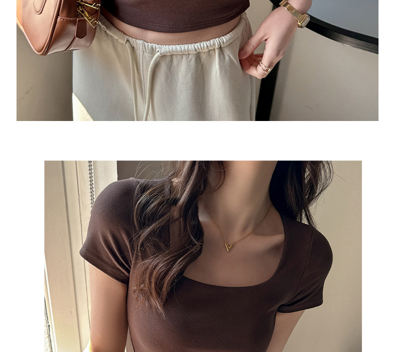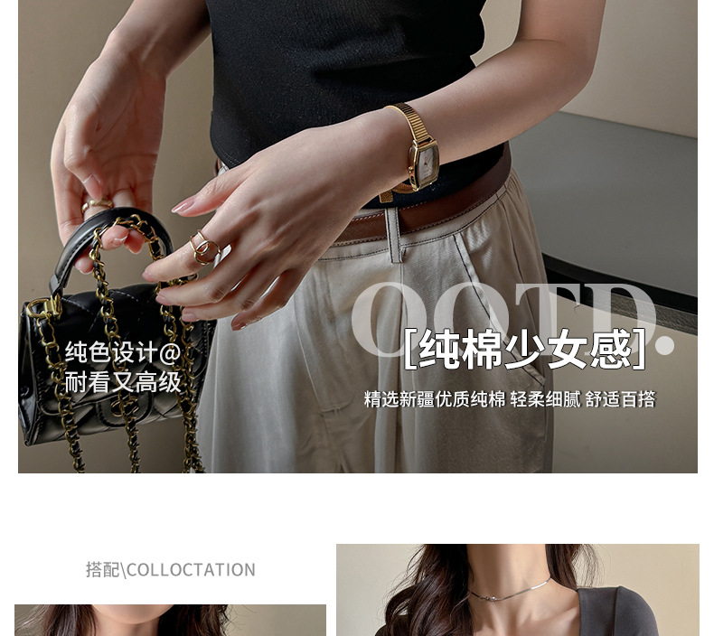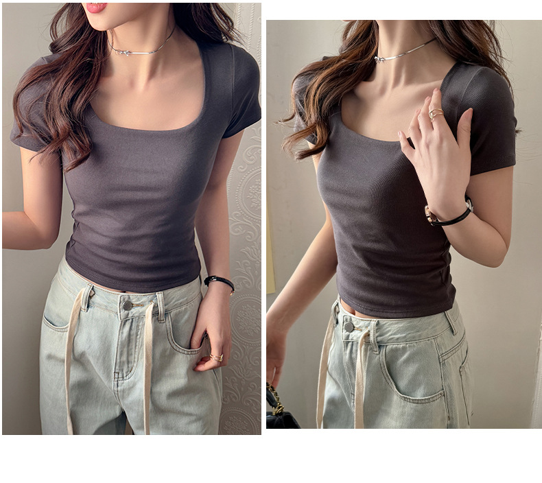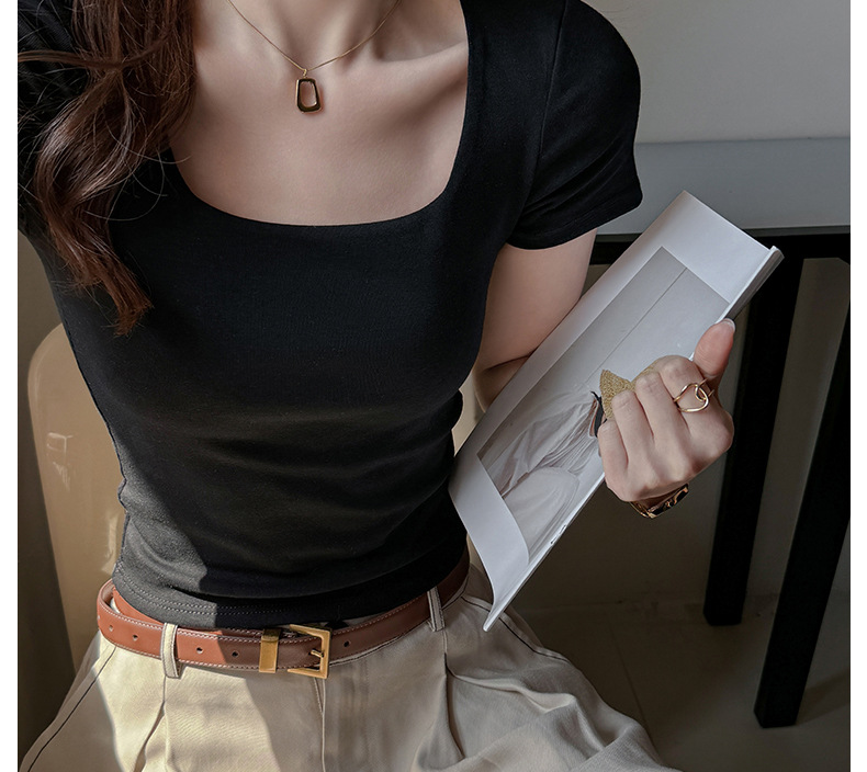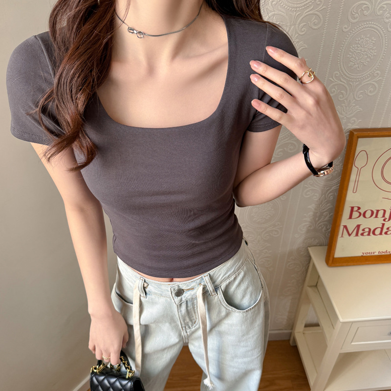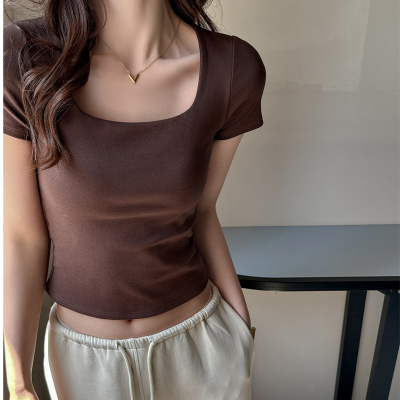 한국식 퓨어 코튼 스퀘어 칼라 내베이스 셔츠 어깨 반팔 티셔츠 여성용 스파이스 걸 패션 하이 엔드 슬림 핏 탑