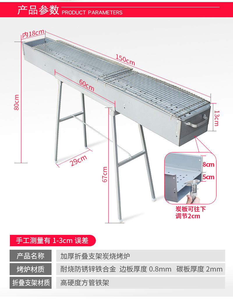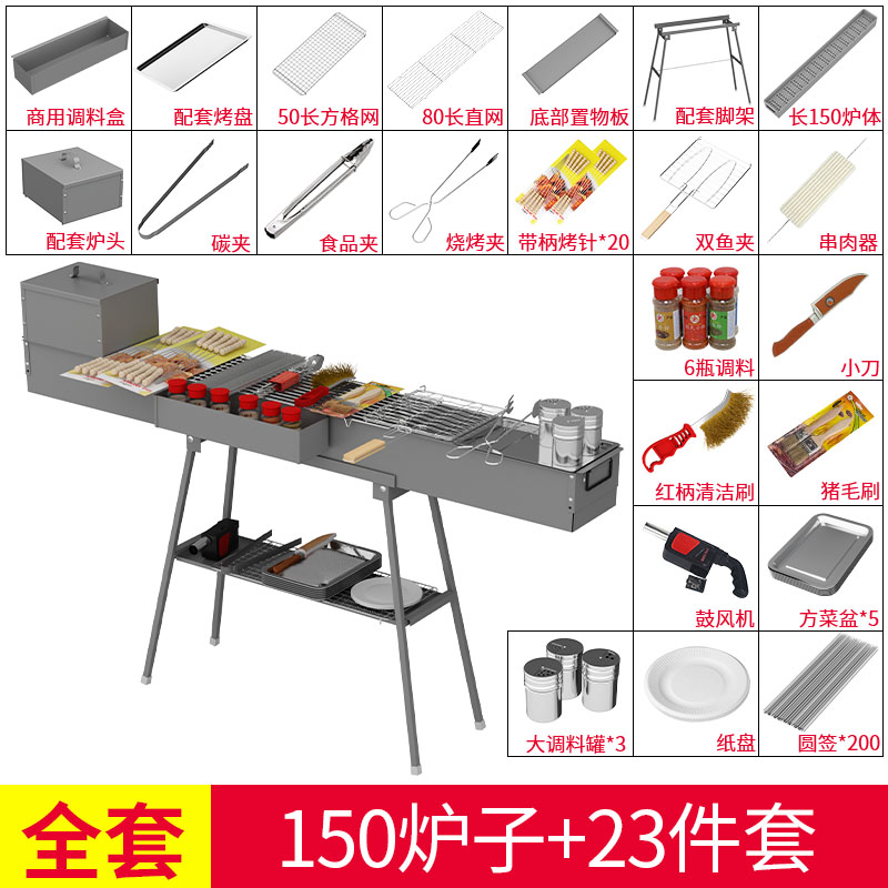 바베큐 그릴 상업용 150cm 길이 18 내부 너비 숯불 그릴 장비 바베큐 스톨 설치스토어 가기