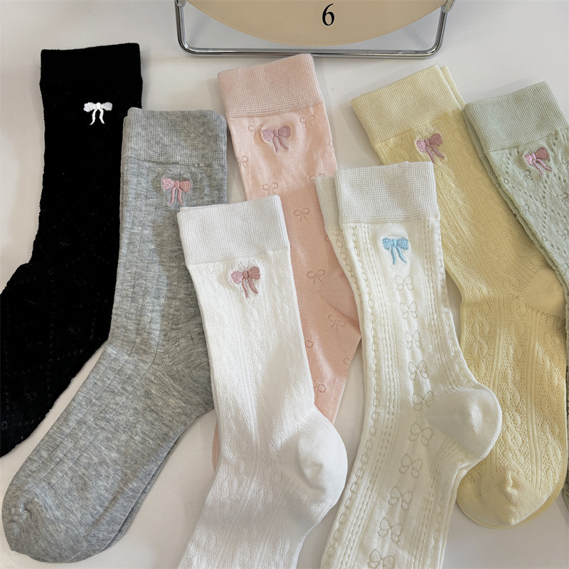 양말 여성용 한국식 캔디 컬러 퓨어 코튼 보우 미드 호스 양말 발레 스타일 여름 얇은 메쉬 빈 양말스토어 가기