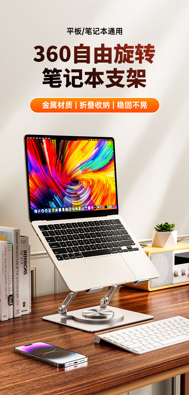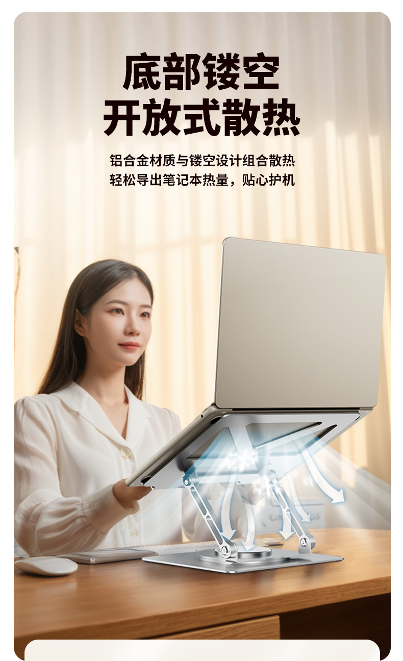 회전 노트북 스탠드 수직 데스크탑 상승 중공 냉각 리프팅 접이식 금속 노트북 스탠드