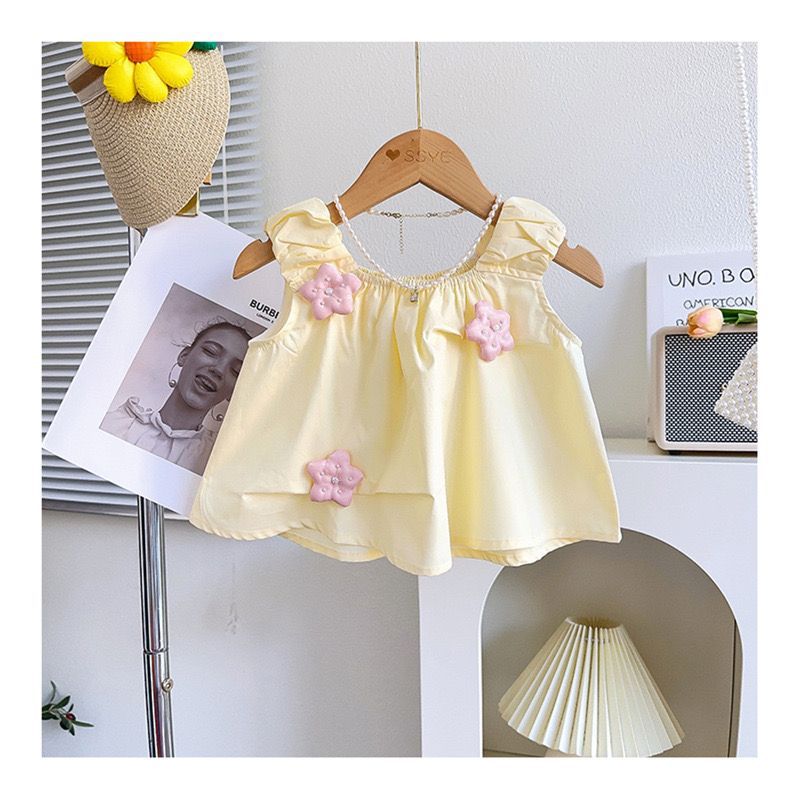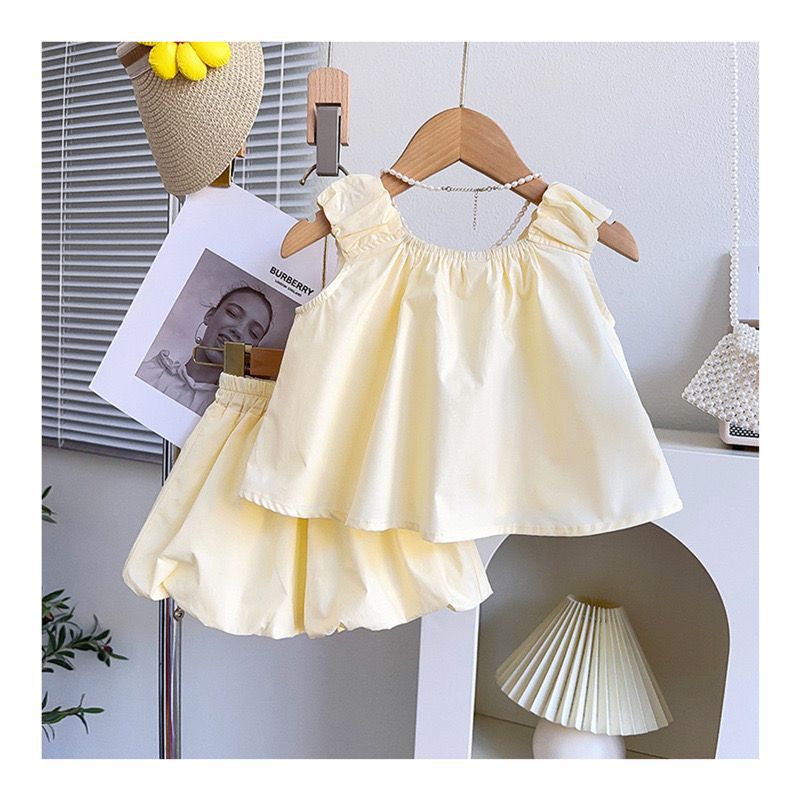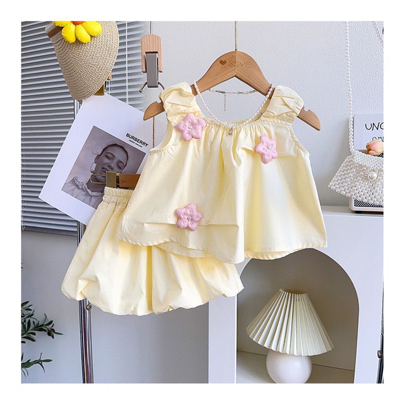 소녀 여름 쉬폰 셔츠 반바지 투피스 2025 새로운 컵크 큰 어린이 한국 레이스 조끼 단어 세트 포함스토어 가기