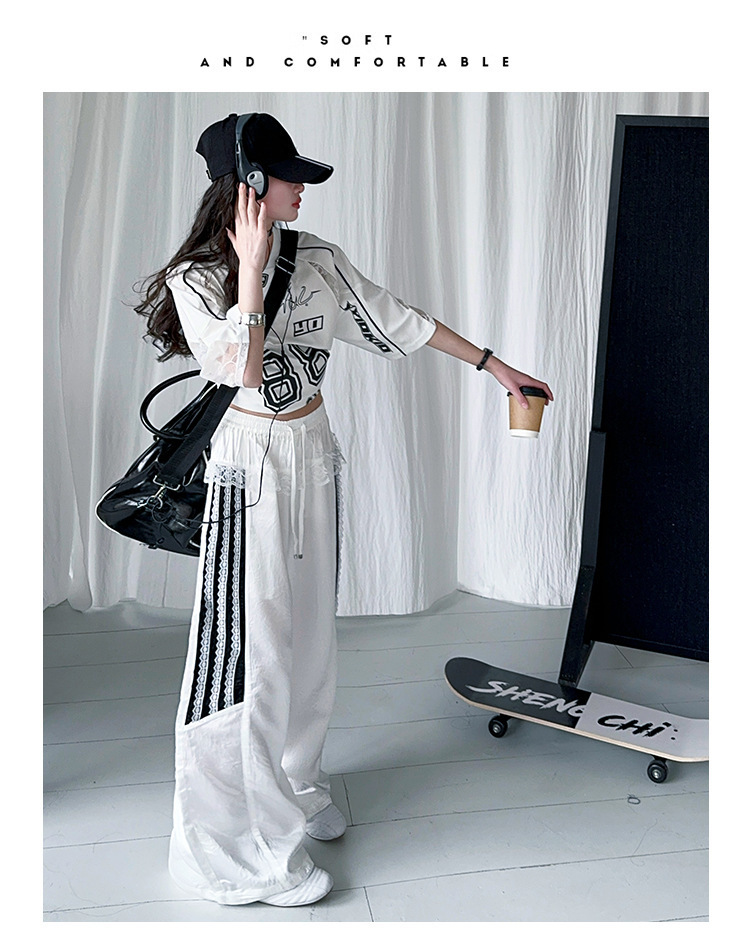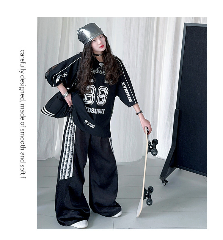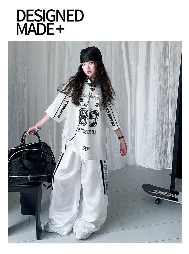 여자 루즈 레저 스포츠 세트 2025 여름 새로운 반팔 티셔츠 바지 프라이드 스트리트 인기 투피스 세트