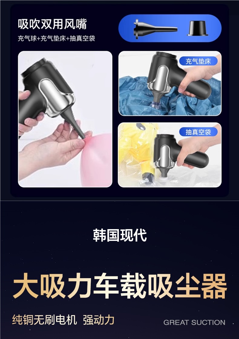 한국 현대 자동차 진공 청소기 휴대용 소형 내부 자동차 무선 가정용 대형 흡입 진공 청소기 미니 소형