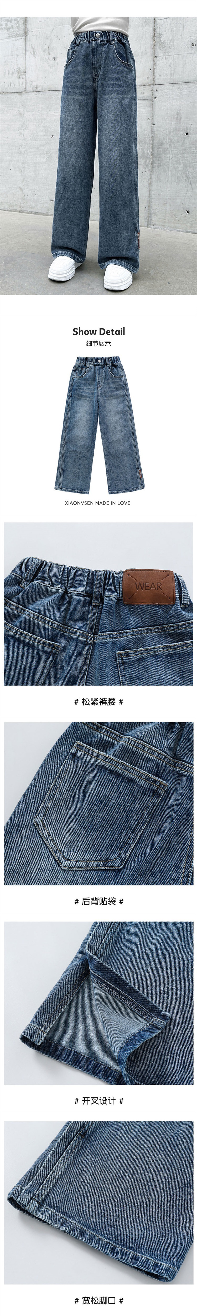여아 청바지, 봄, 가을 스타일, 아동용 슬릿 스트레이트 팬츠, 봄 트렌디하고 멋진 다용도 팬츠, 여아용 와이드 팬츠스토어 가기