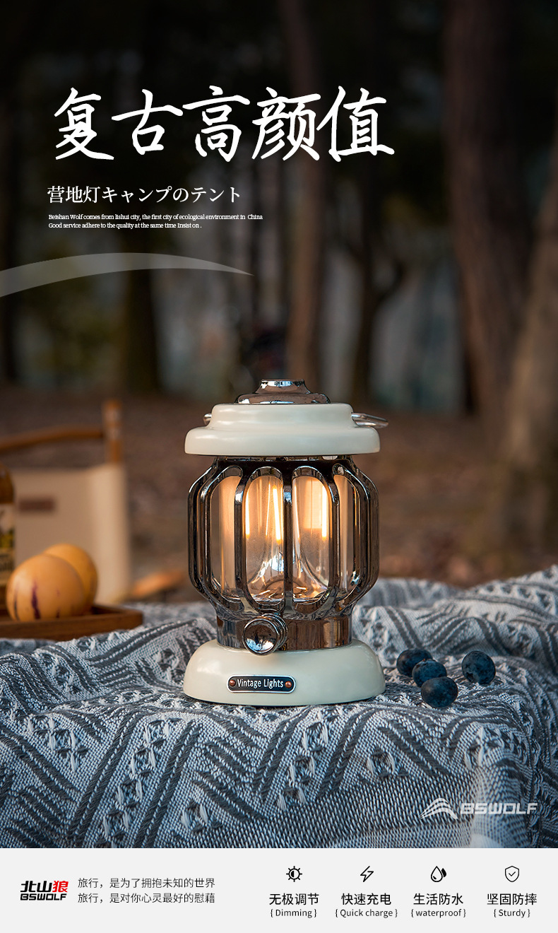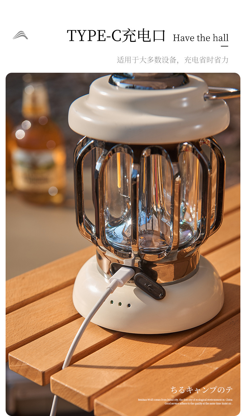 • 캠핑 레트로 램프 - 아이보리 화이트 [충전식 버전] 긴 배터리 수명/무단계 디밍