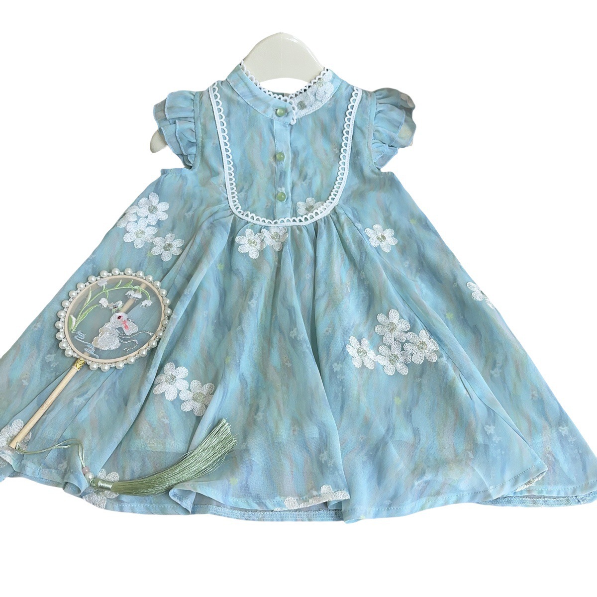 여자 중국 스타일 원피스 여름 새로운 스타일 서양식 고급 느낌 비행 슬리브 메쉬 자수 원피스스토어 가기