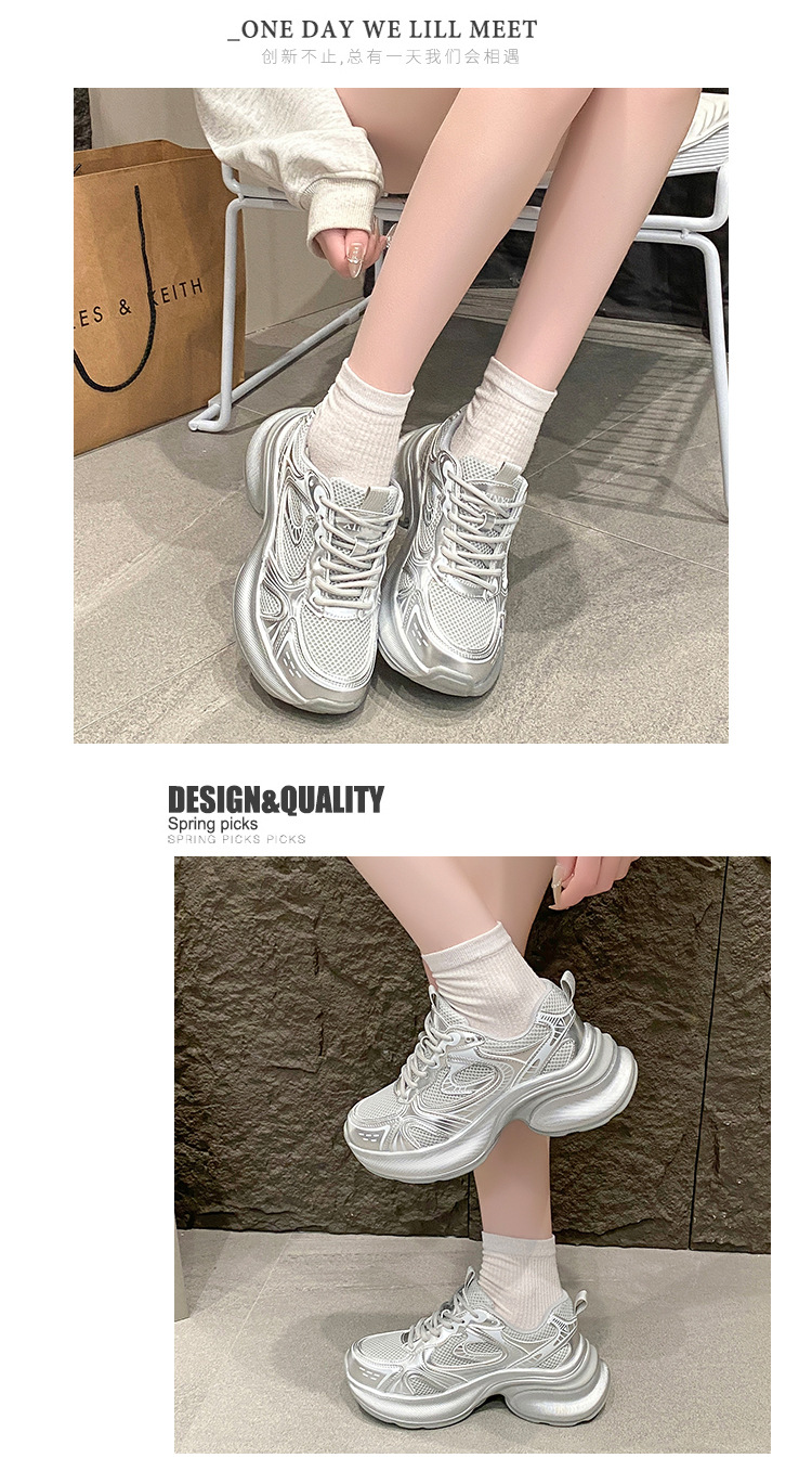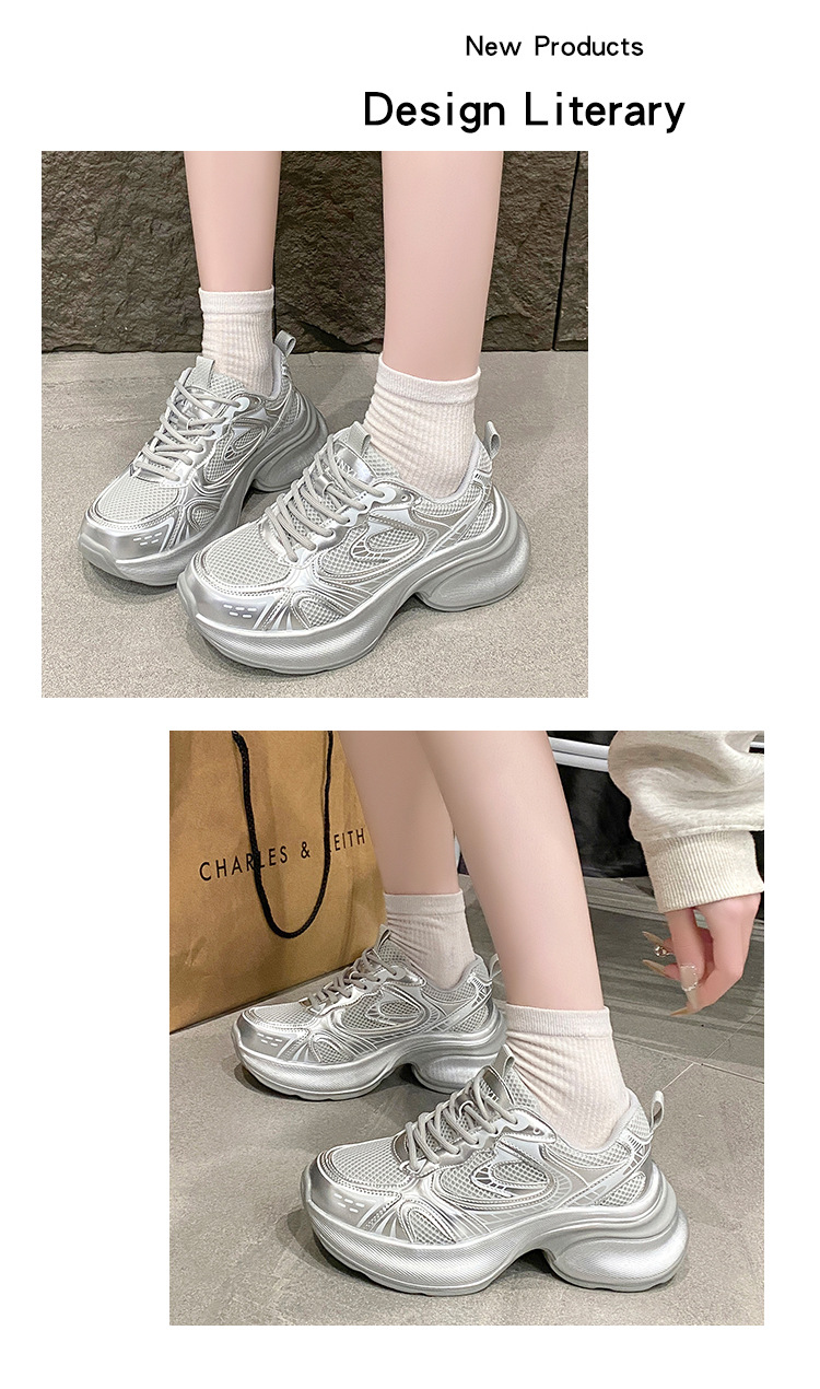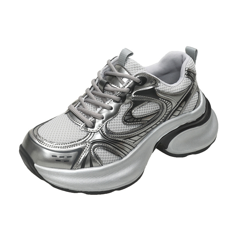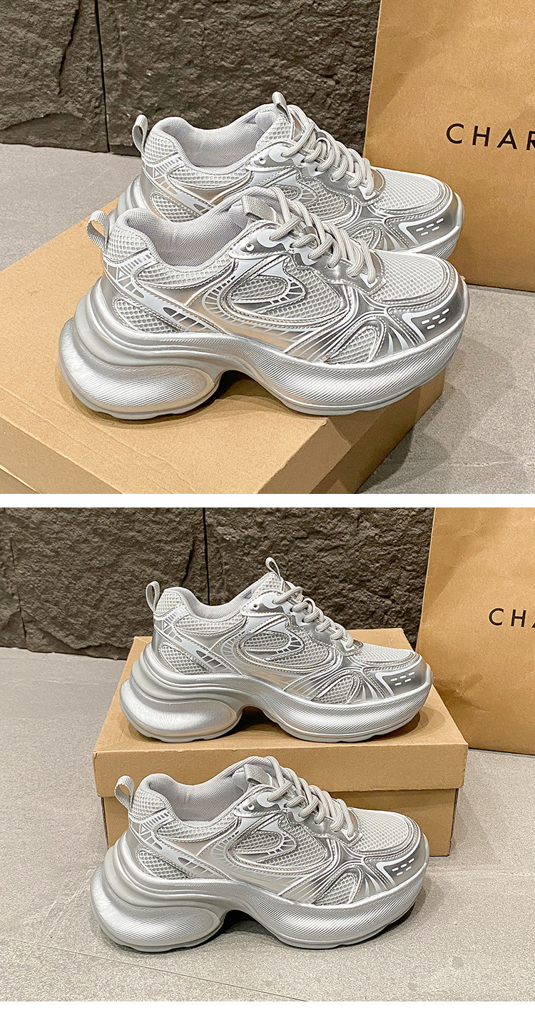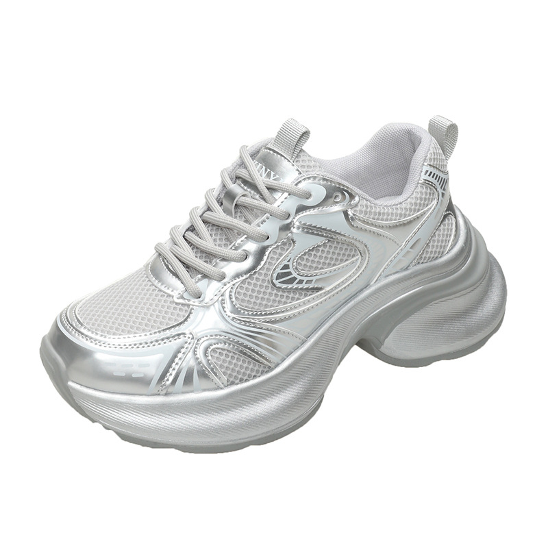 35-43 사이즈 대형 여성 신발 아빠 신발 패션 캐주얼 신발 두꺼운 밑창 높이 증가 실버 통기성 스포츠 신발 42
