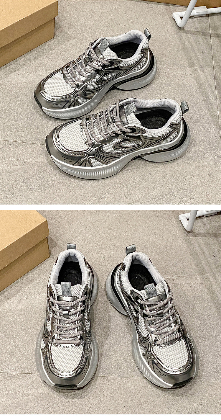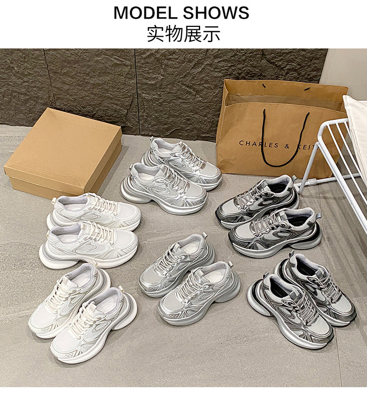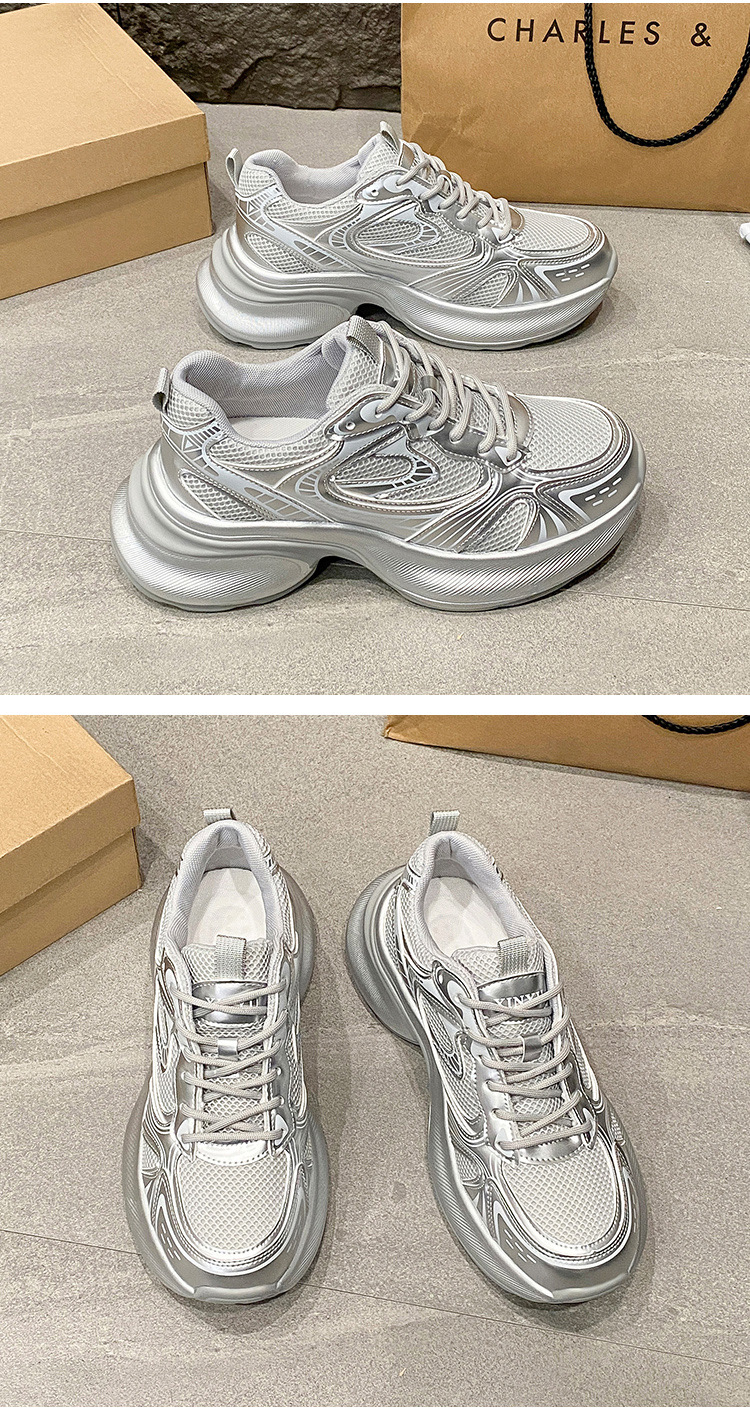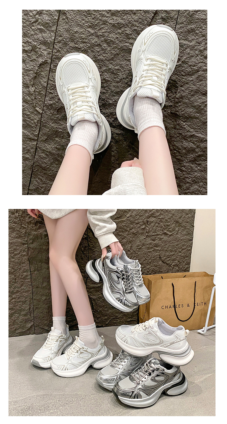 35-43 사이즈 대형 여성 신발 아빠 신발 패션 캐주얼 신발 두꺼운 밑창 높이 증가 실버 통기성 스포츠 신발 42