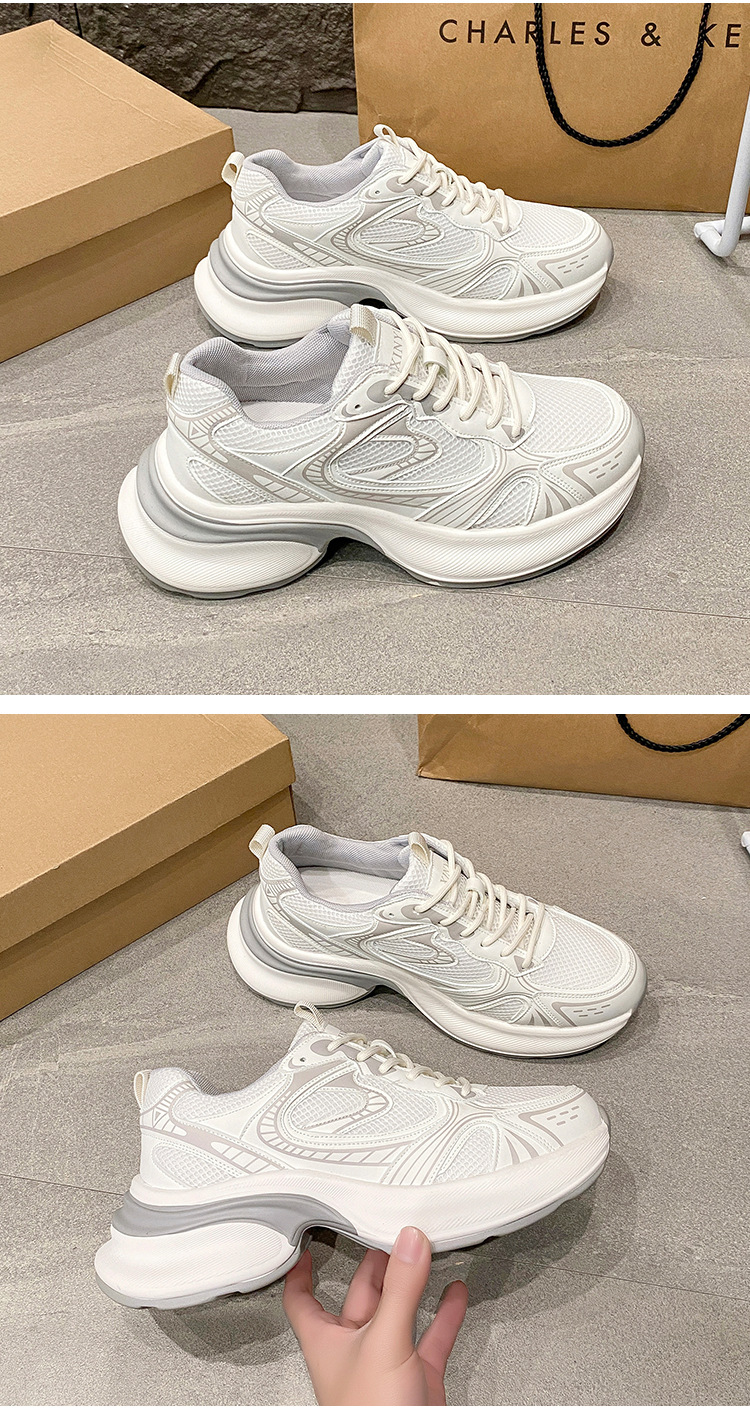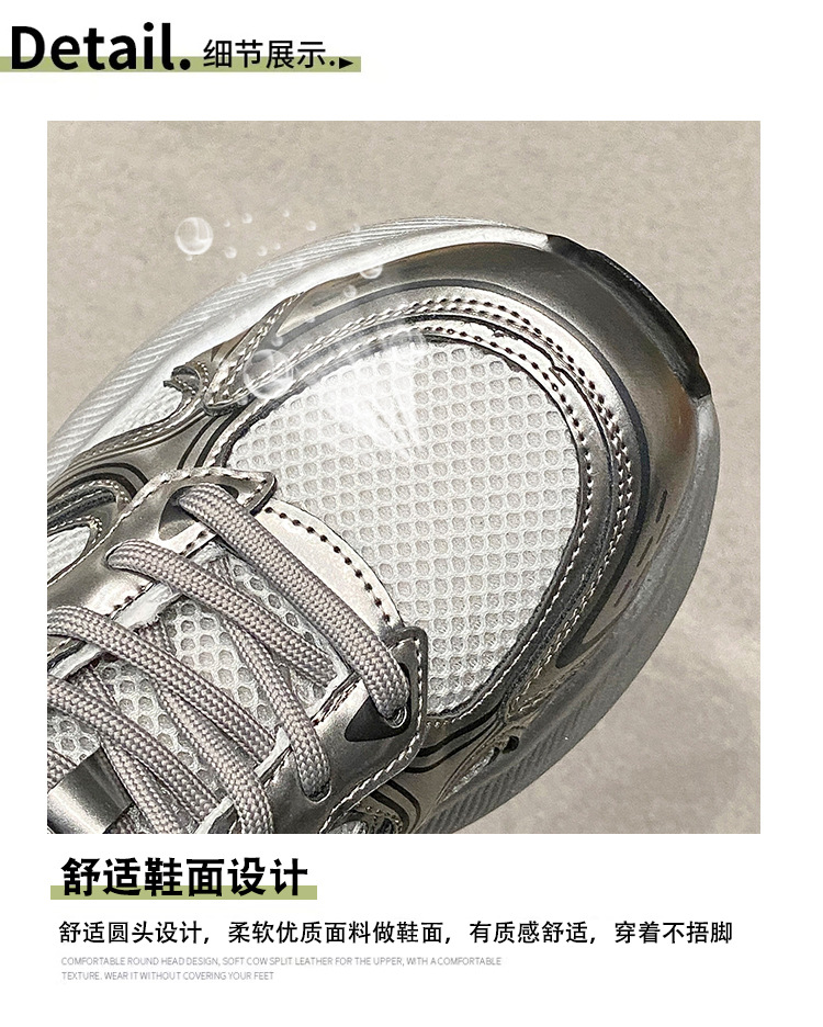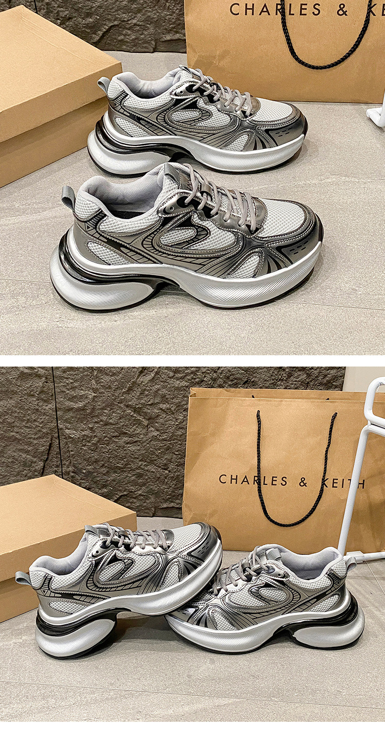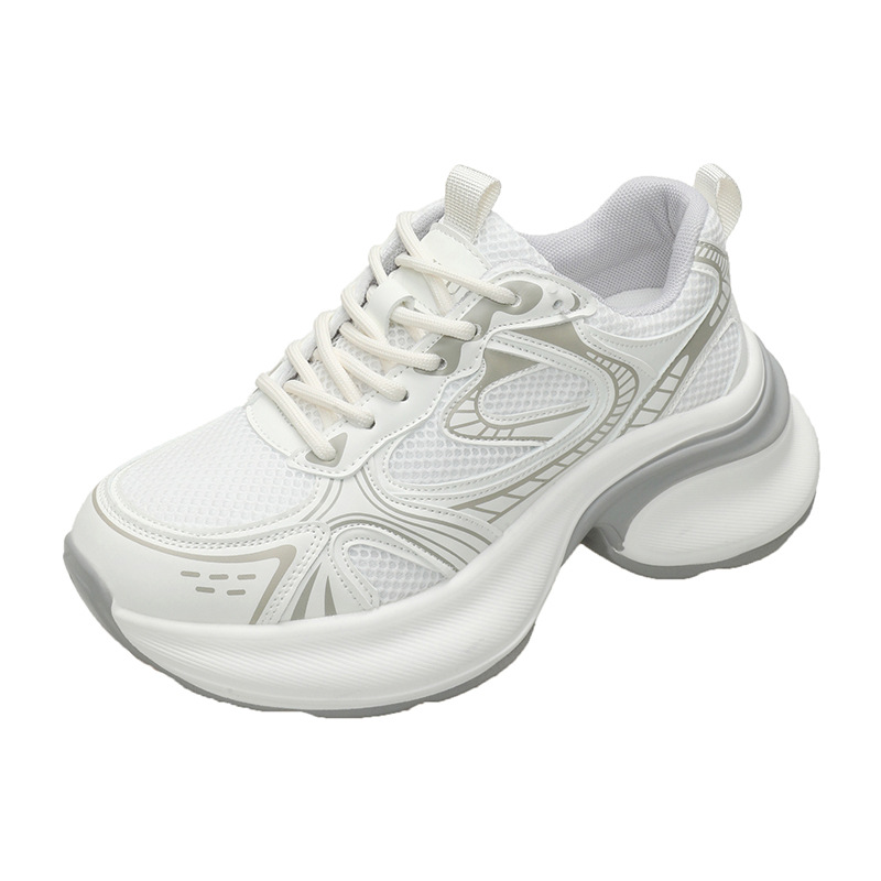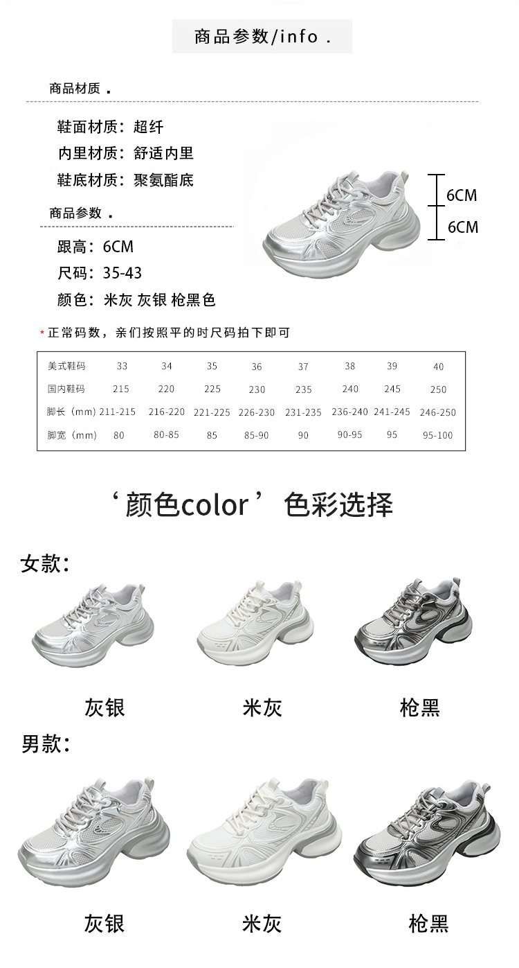 35-43 사이즈 대형 여성 신발 아빠 신발 패션 캐주얼 신발 두꺼운 밑창 높이 증가 실버 통기성 스포츠 신발 42