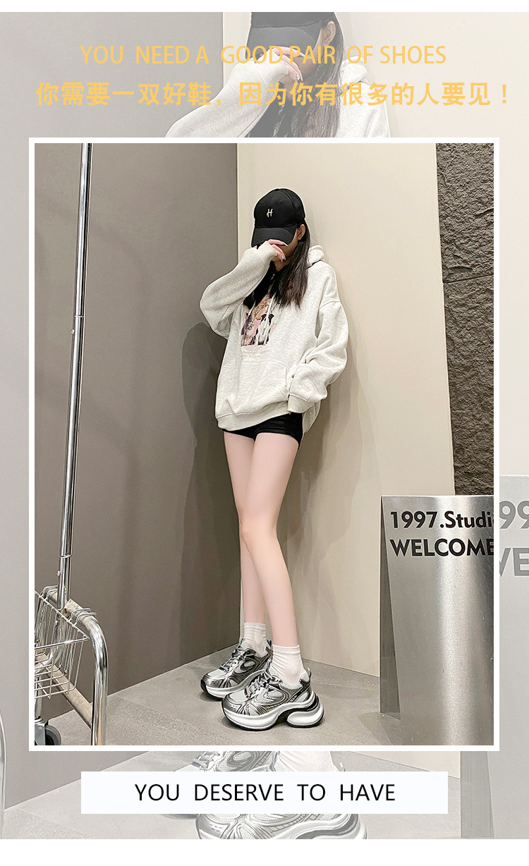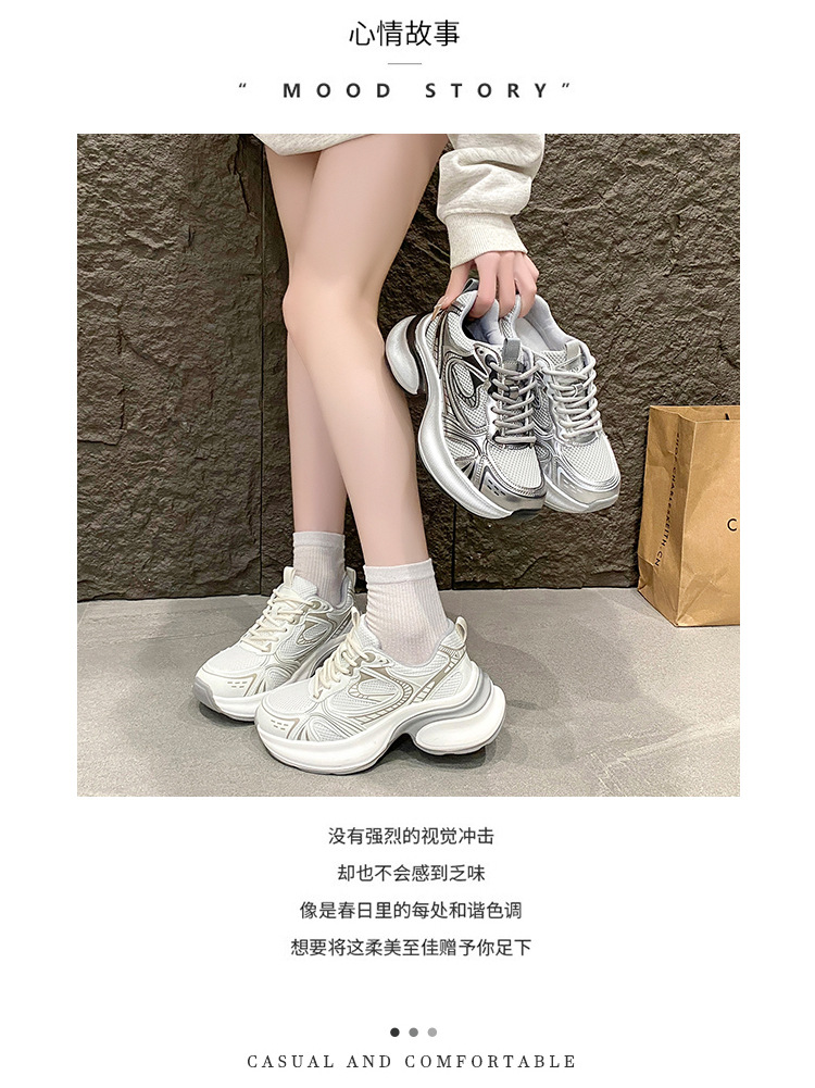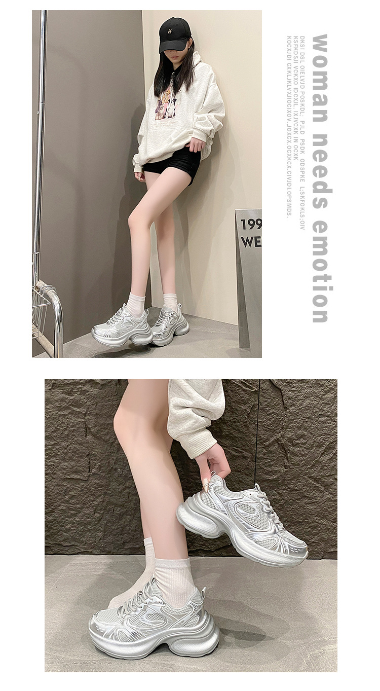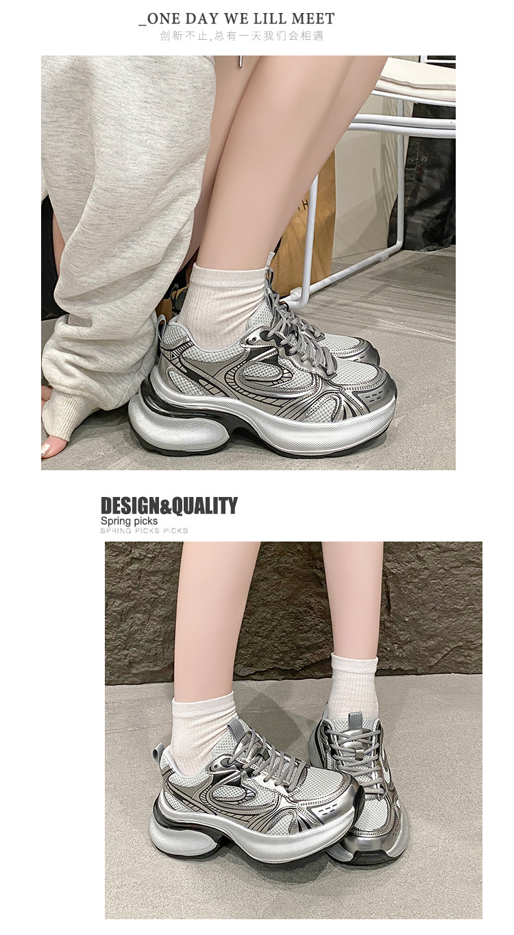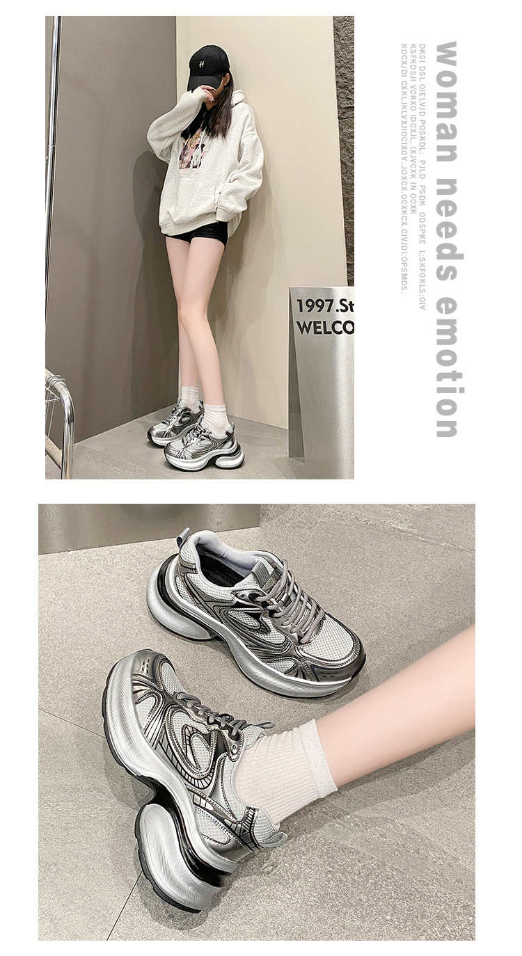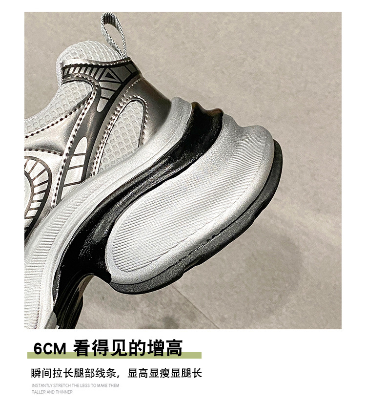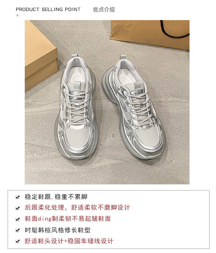 35-43 사이즈 대형 여성 신발 아빠 신발 패션 캐주얼 신발 두꺼운 밑창 높이 증가 실버 통기성 스포츠 신발 42스토어 가기