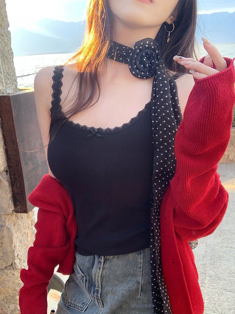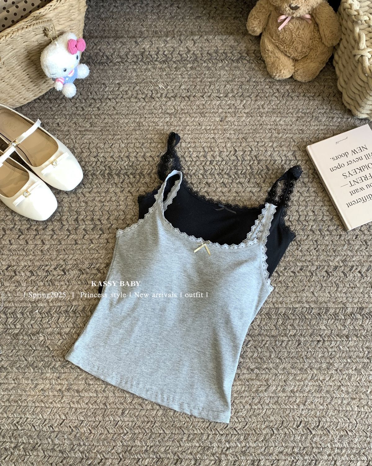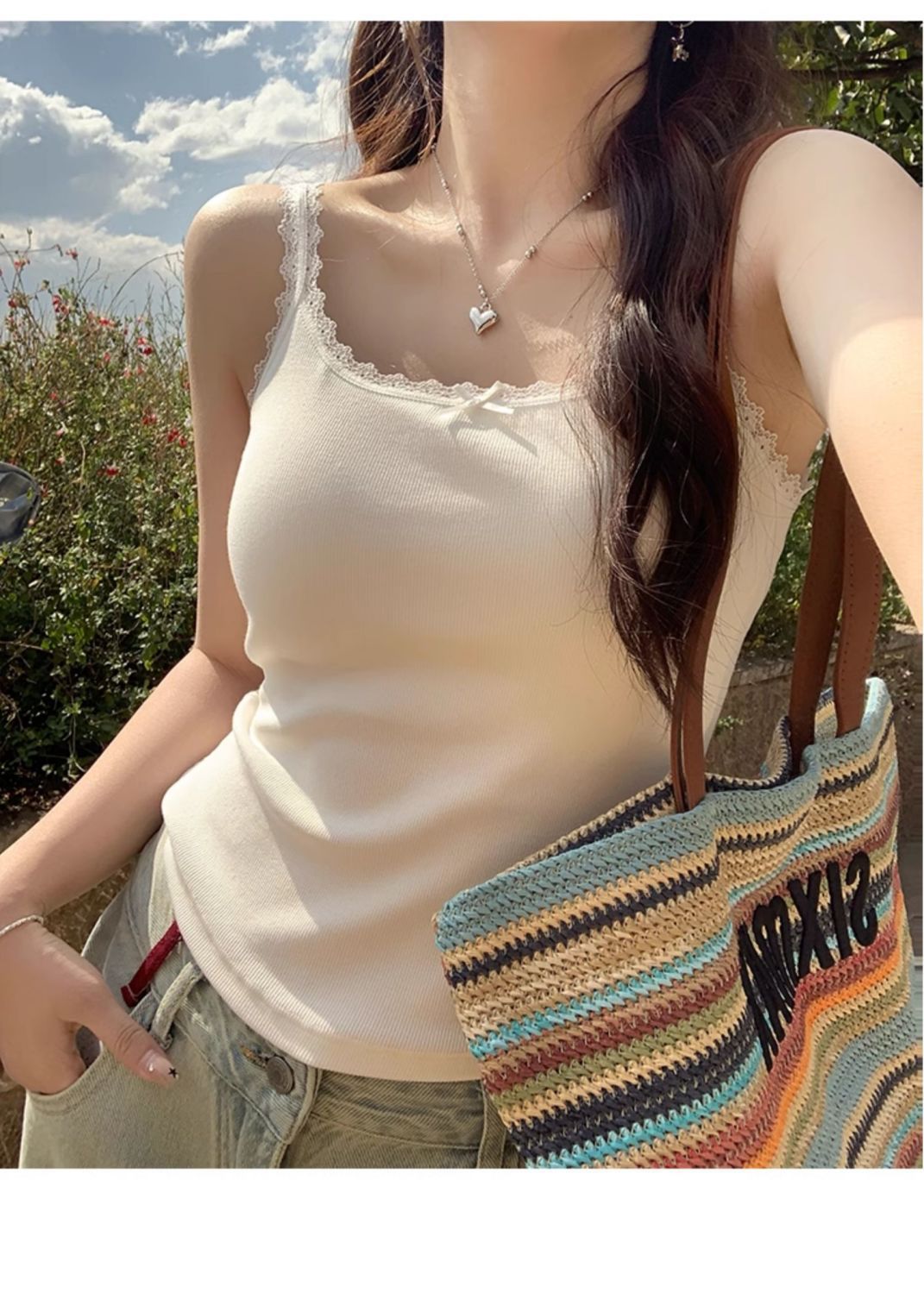 가슴 패드가 있는 여성용 순수한 욕망 나비 넥타이 레이스 캐미솔, 슬림핏, 내부 및 외부 착용, 핫걸 연령 감소 탑
