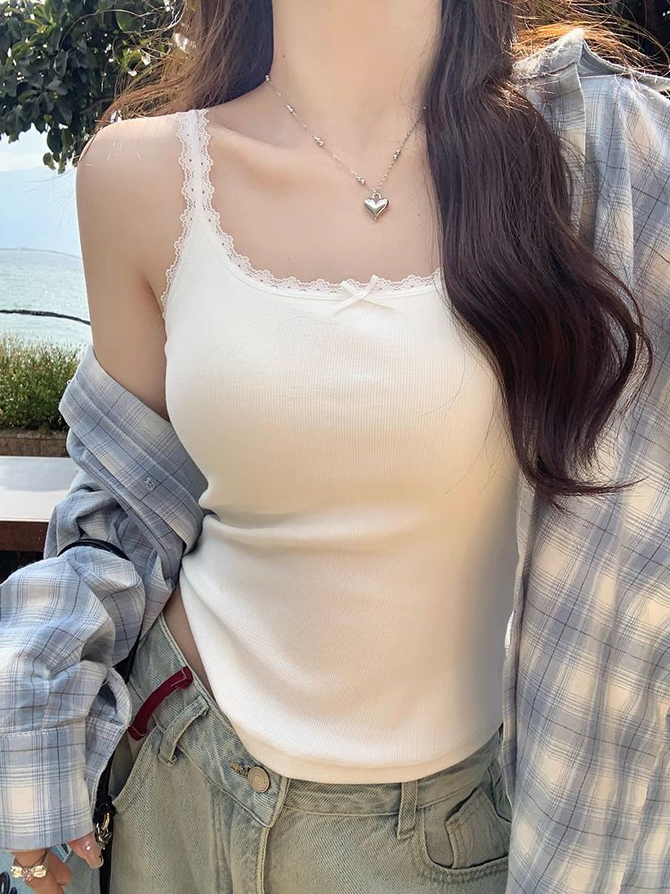 가슴 패드가 있는 여성용 순수한 욕망 나비 넥타이 레이스 캐미솔, 슬림핏, 내부 및 외부 착용, 핫걸 연령 감소 탑스토어 가기