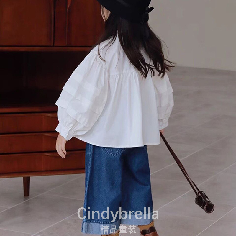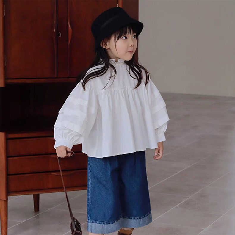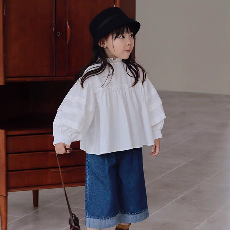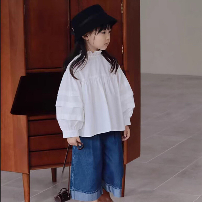 소녀의 주름진 셔츠 2025 봄 새로운 어린 소녀의 셔츠 레이스 칼라 여성의 아기 인형 셔츠스토어 가기