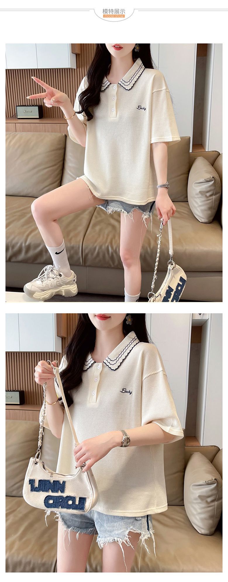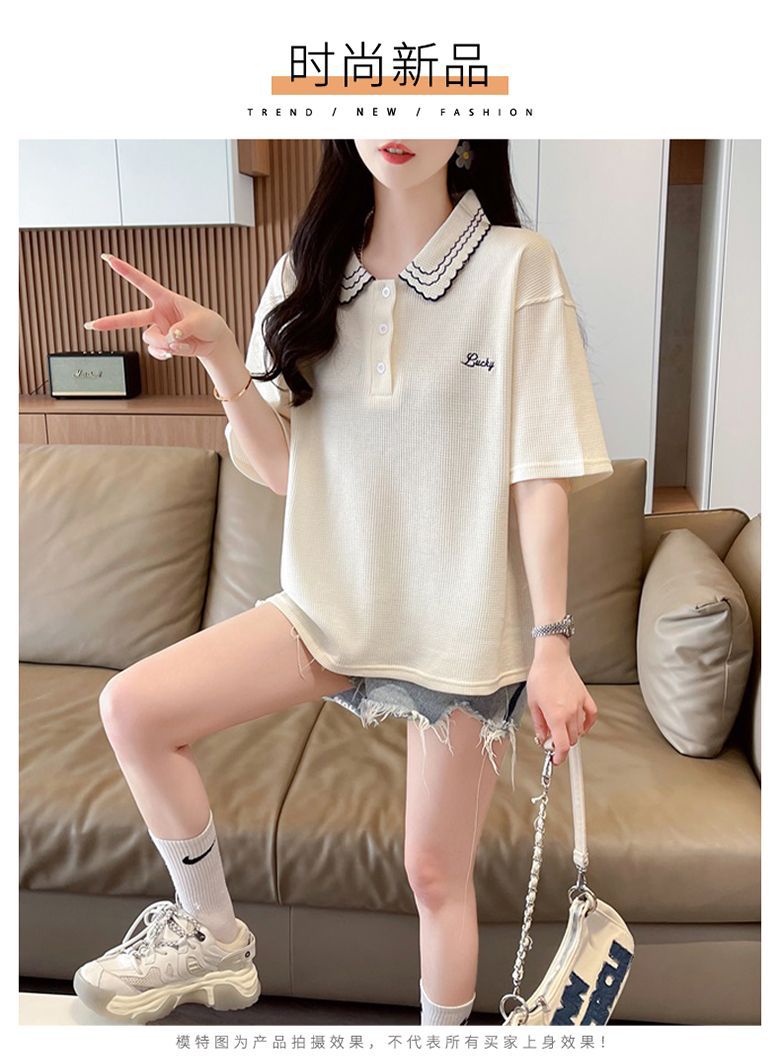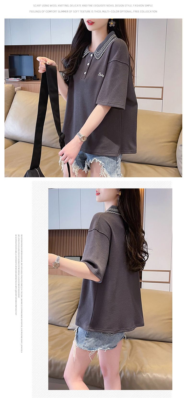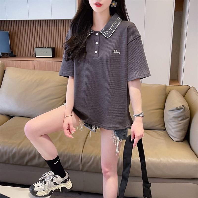 디자인 센스 니치 반팔 티셔츠 여성 2025 년 여름 새 한국어 버전 느슨한 플러스 사이즈 와플 폴로 칼라 옷스토어 가기