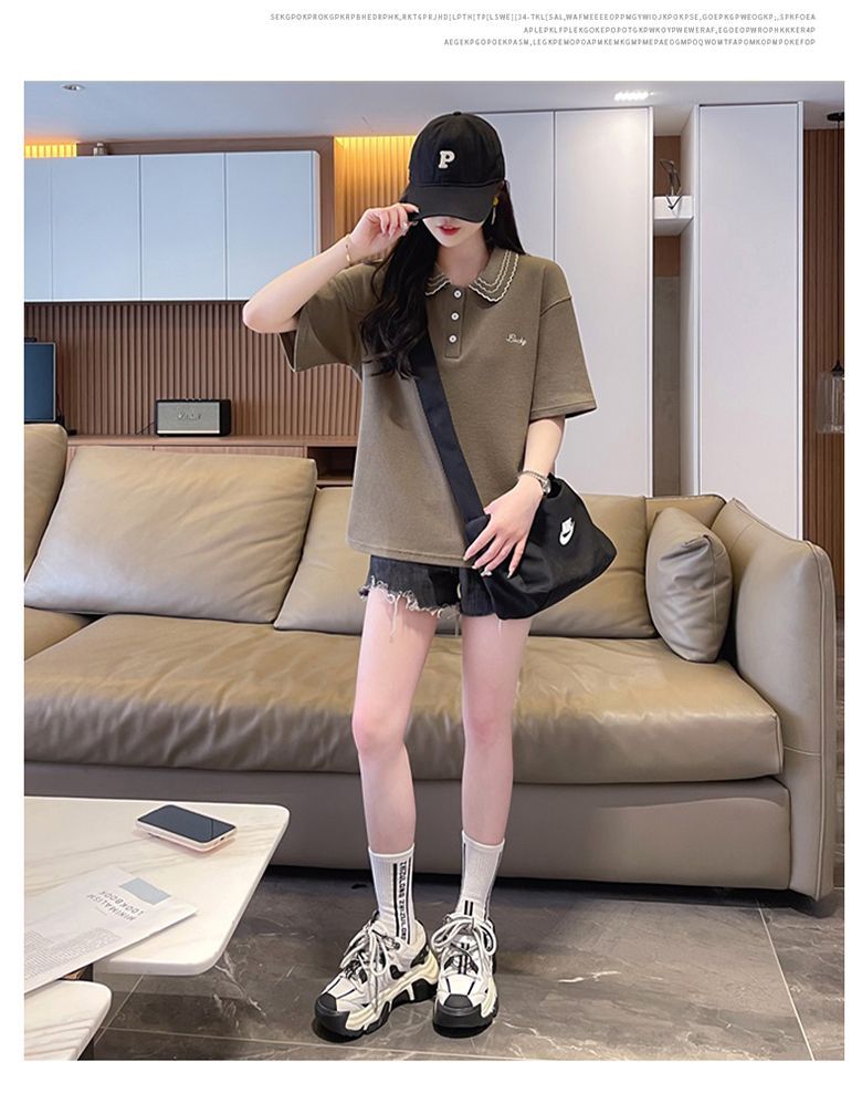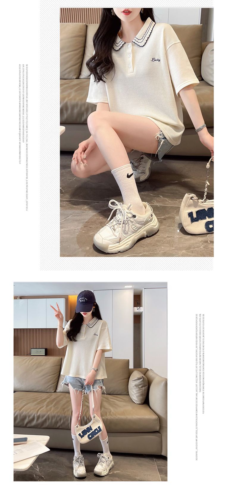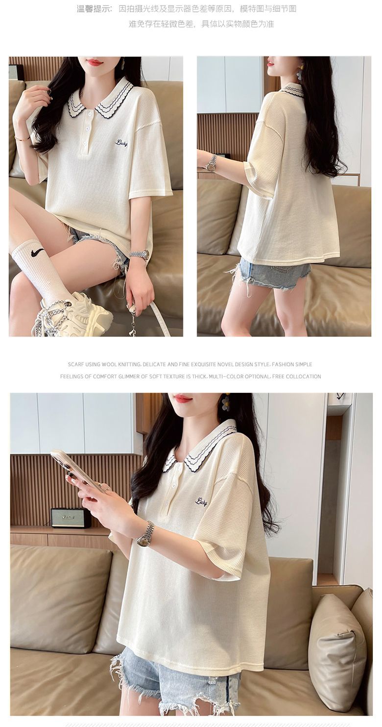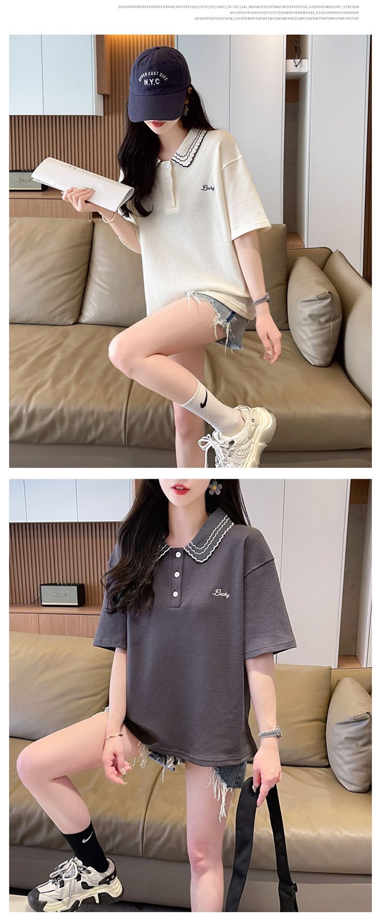 디자인 센스 니치 반팔 티셔츠 여성 2025 년 여름 새 한국어 버전 느슨한 플러스 사이즈 와플 폴로 칼라 옷스토어 가기