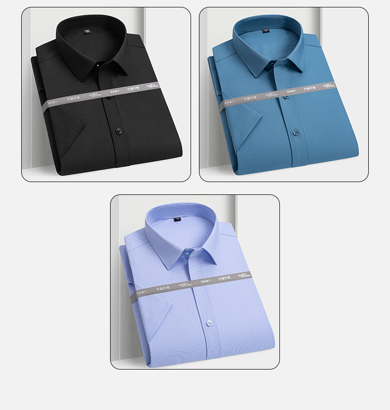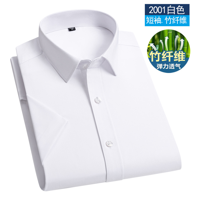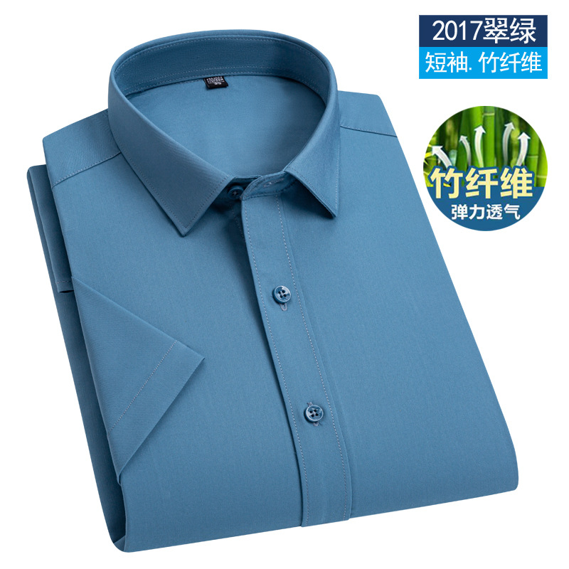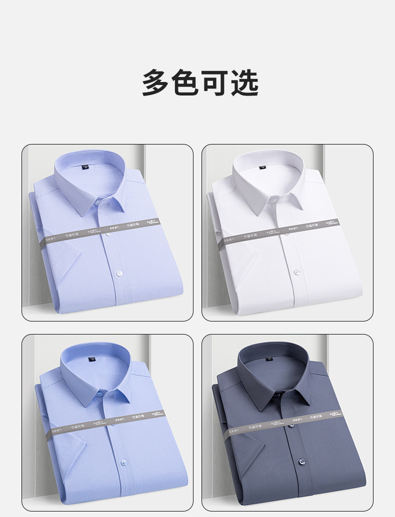 새로운 봄, 여름 얇은 대나무 섬유 반팔 셔츠 비즈니스 정장 뚱뚱한 사람들을위한 노 스타일 플러스 사이즈 남성 셔츠