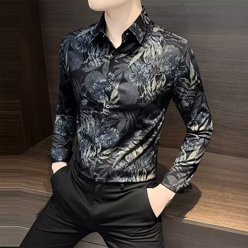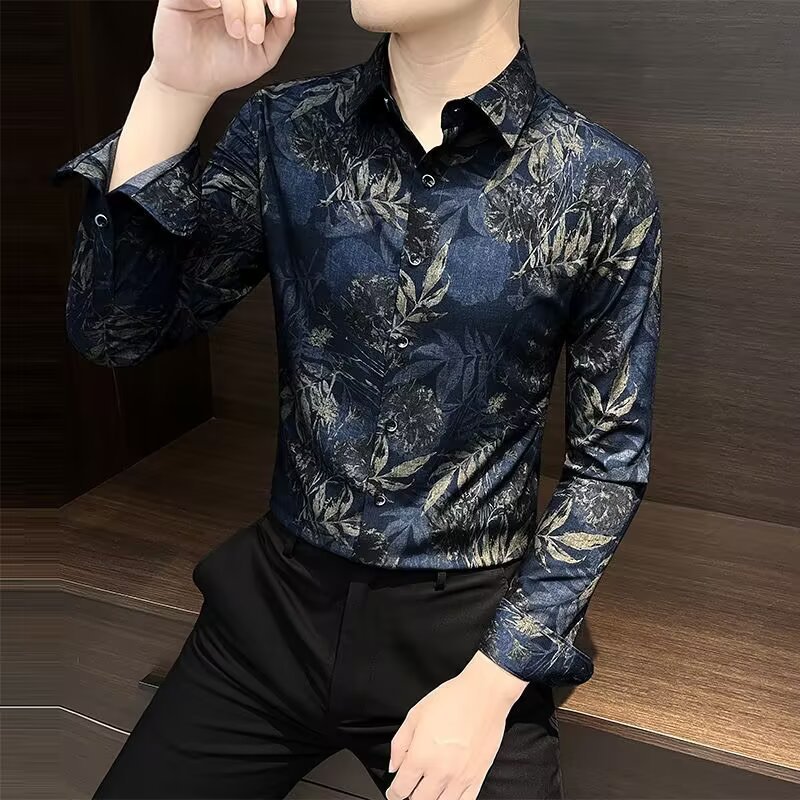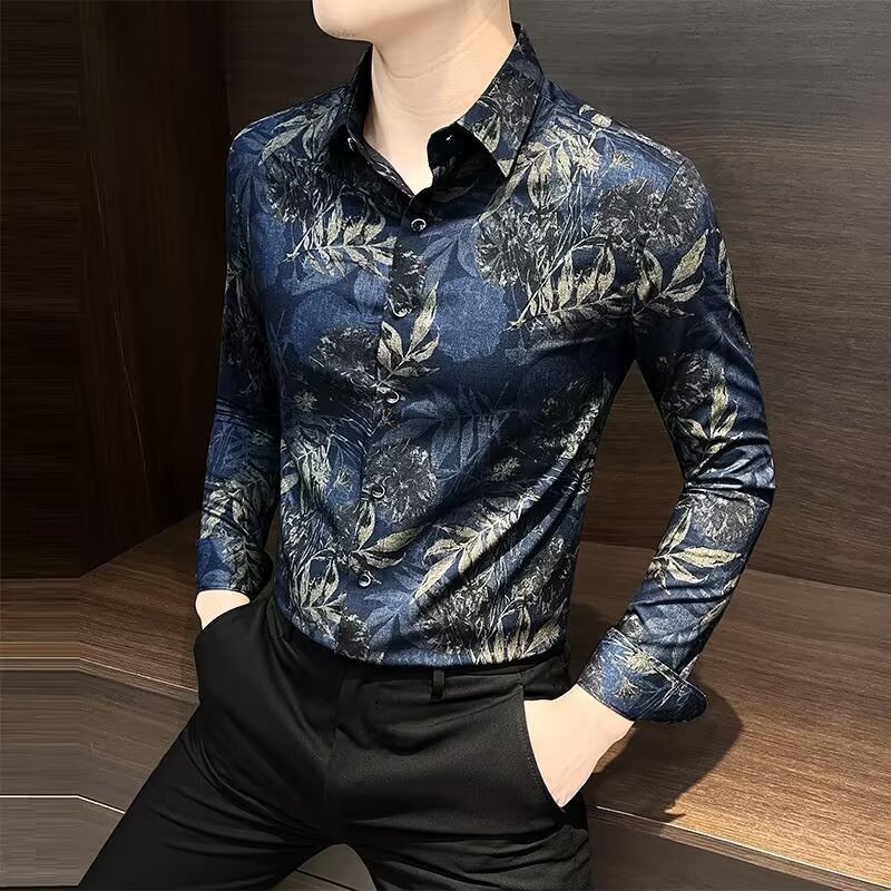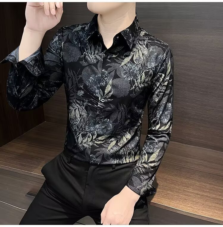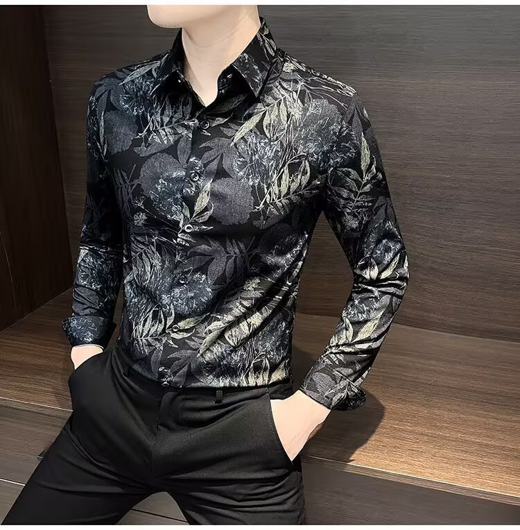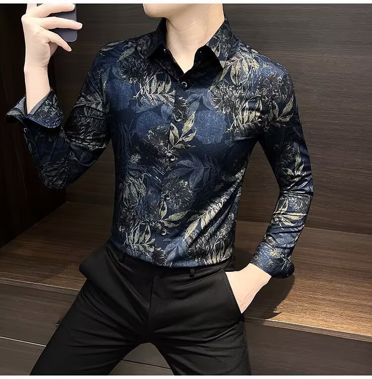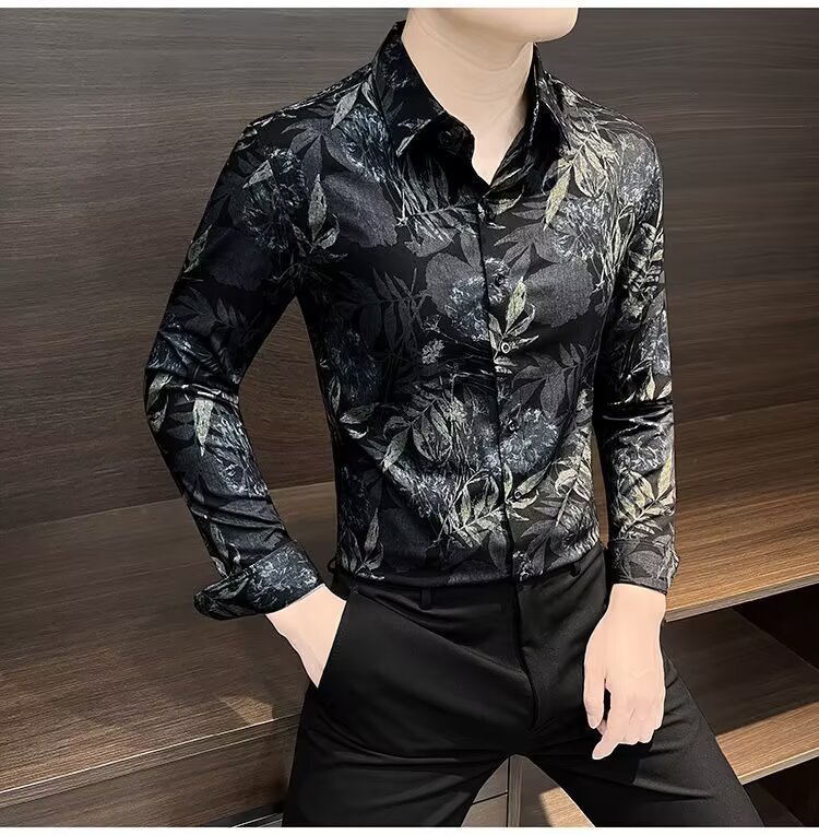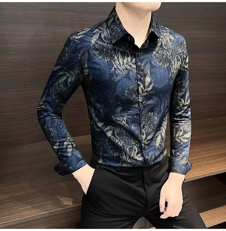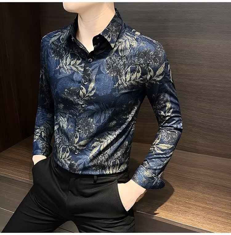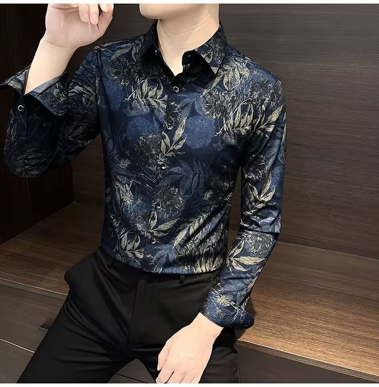 꽃 셔츠 남자 긴팔 하이 엔드 느낌 운이 좋은 남자 2025 년 새 봄 톱 남자 꽃 셔츠스토어 가기