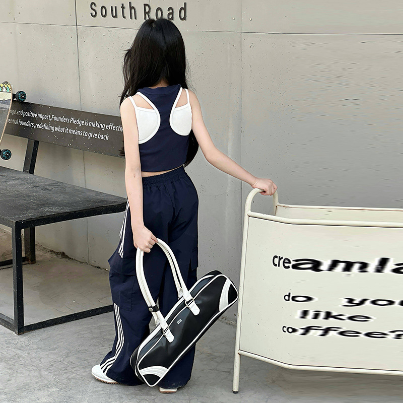 여아 티셔츠 바지 정장 여름 2025 새로운 한국 스타일 여아 반팔 바지 투피스 세트, 스타일리시하고 다재다능함스토어 가기