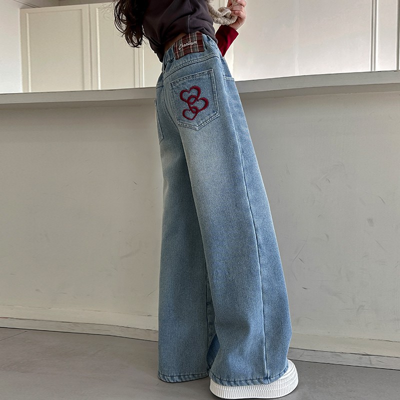 • 뒷주머니에 자수 러브 하트가 들어간 와이드 팬츠