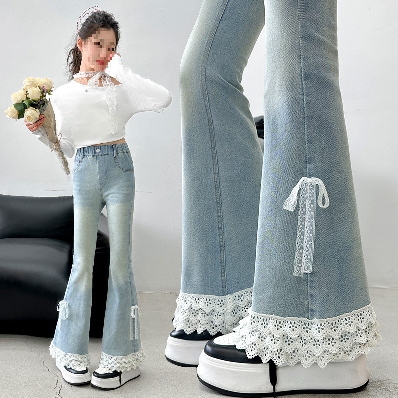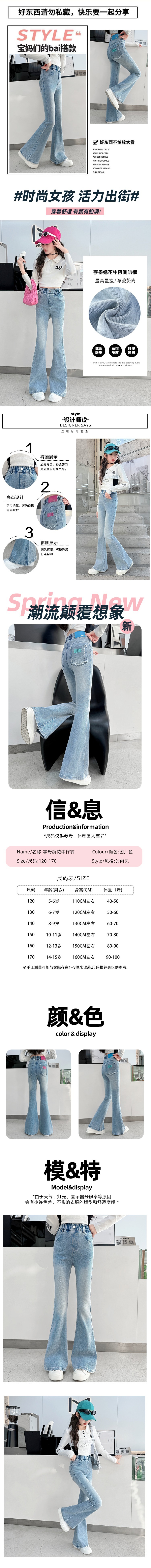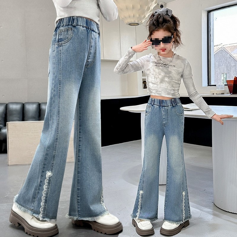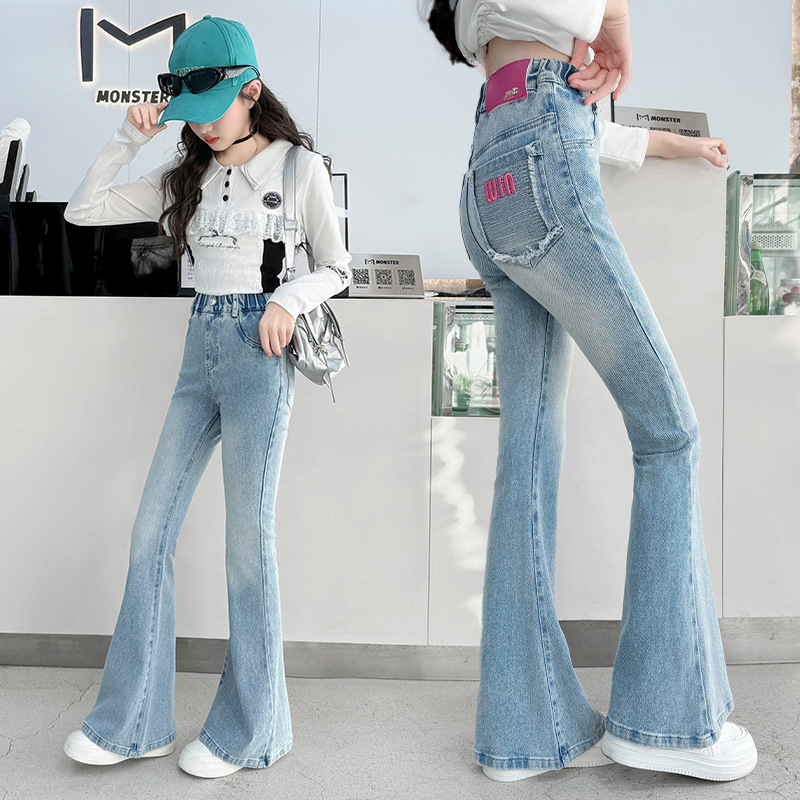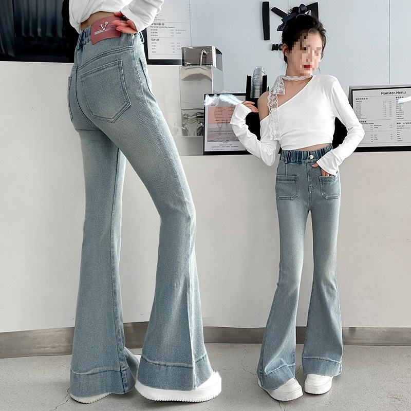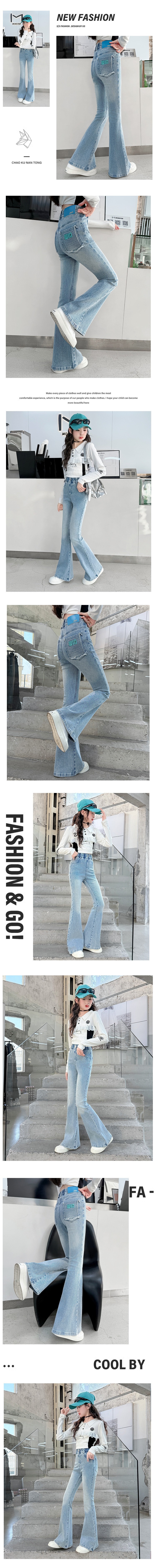 여아 플레어 팬츠, 봄, 가을 한국식 슬림핏 청바지, 여아용 봄옷, 봄 스타일 아동 바지스토어 가기