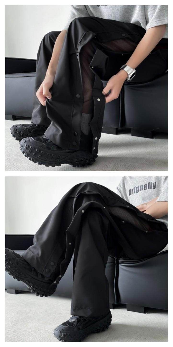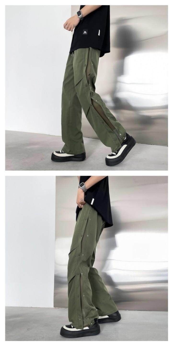 봄 여름 남성용 블랙 스플라이스 메쉬 버튼 아웃 도어 팬츠, 아메리칸 아웃도어 하이킹 팬츠, 트렌디한 캐주얼 스포츠 팬츠