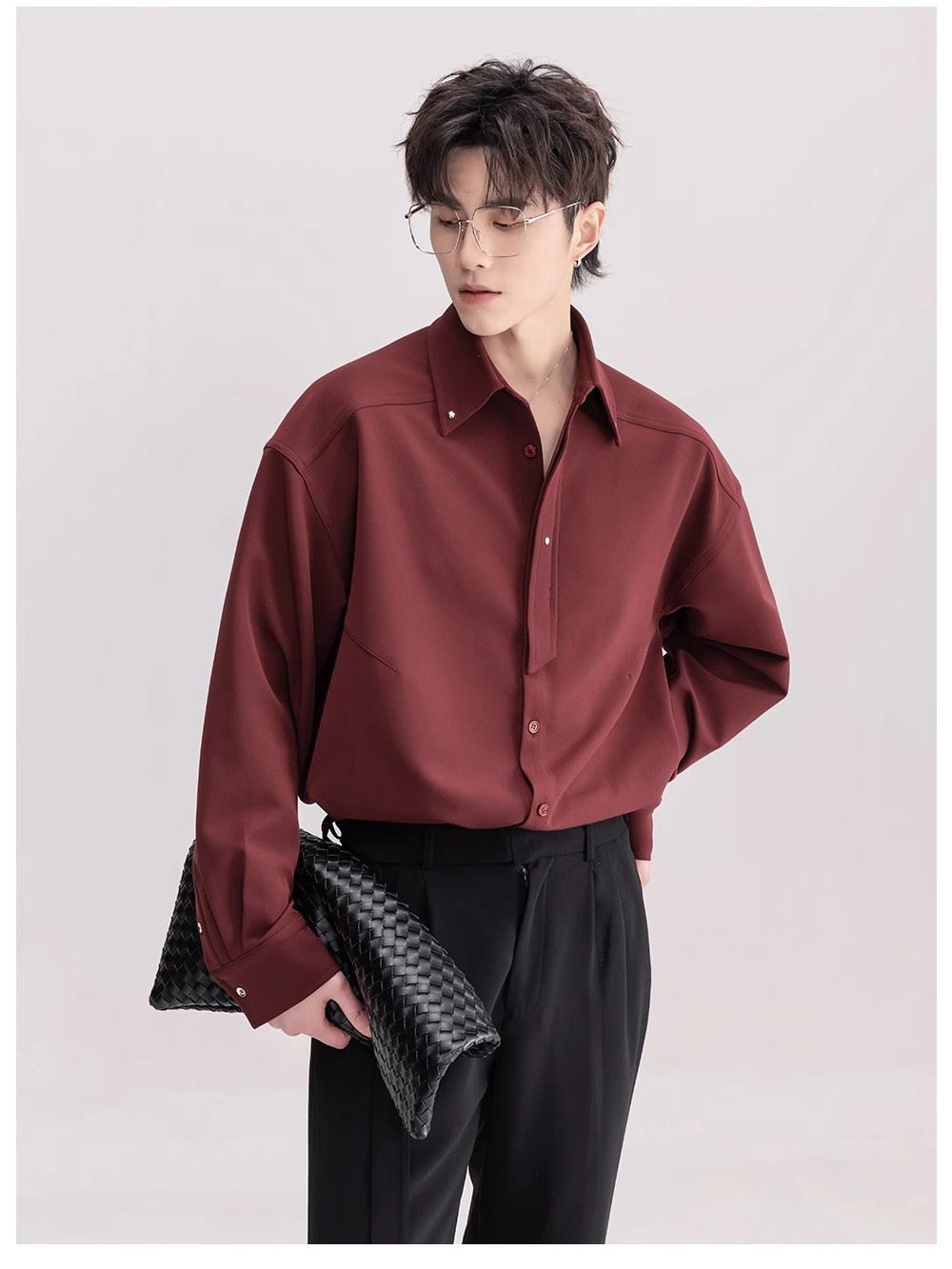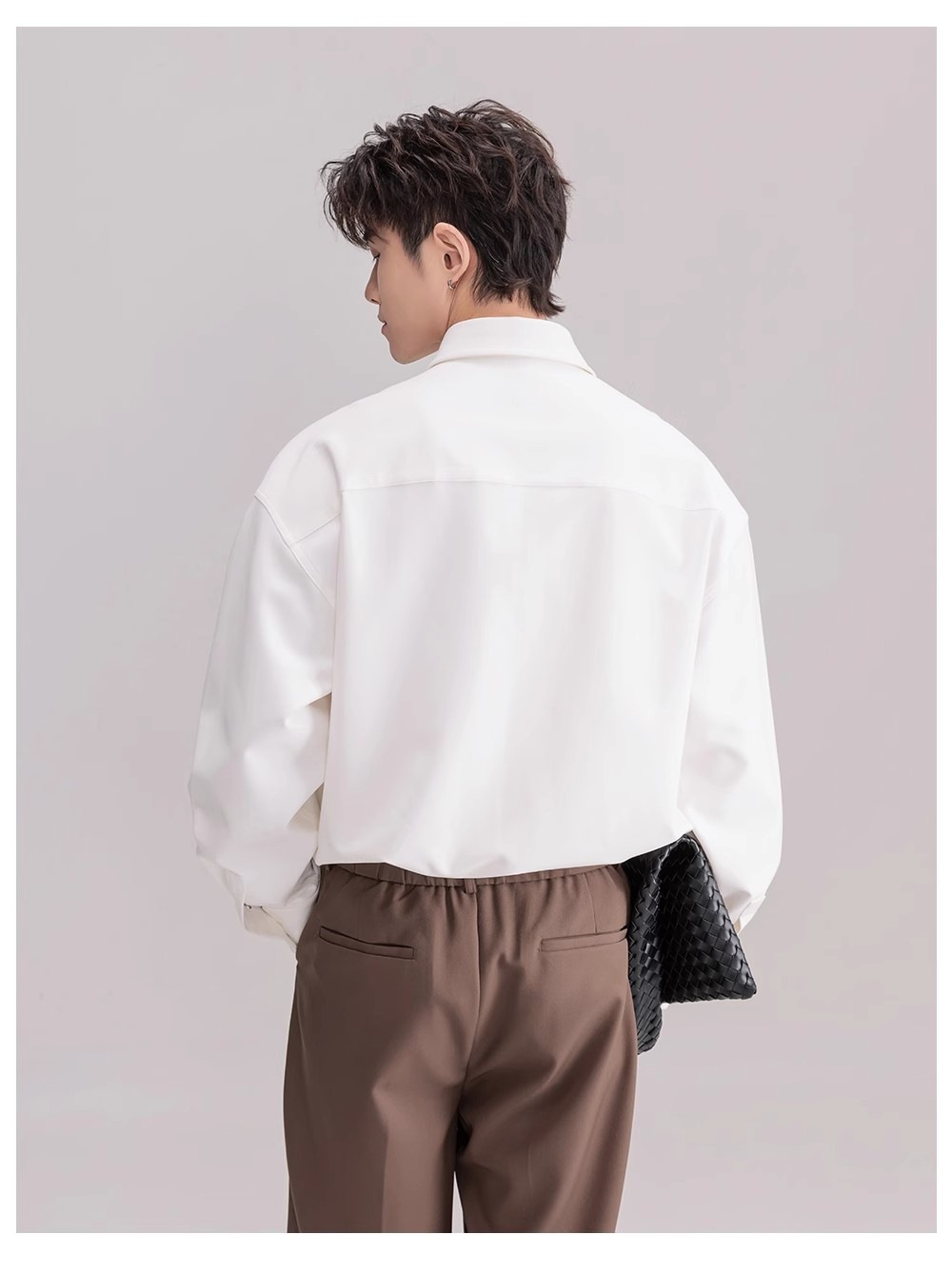 봄, 가을 남성용 크로스보더 셔츠, 한국 트렌디 브랜드, 루즈하고 활용도가 높은 솔리드 컬러 캐주얼 라펠 셔츠, 남성 트렌디스토어 가기
