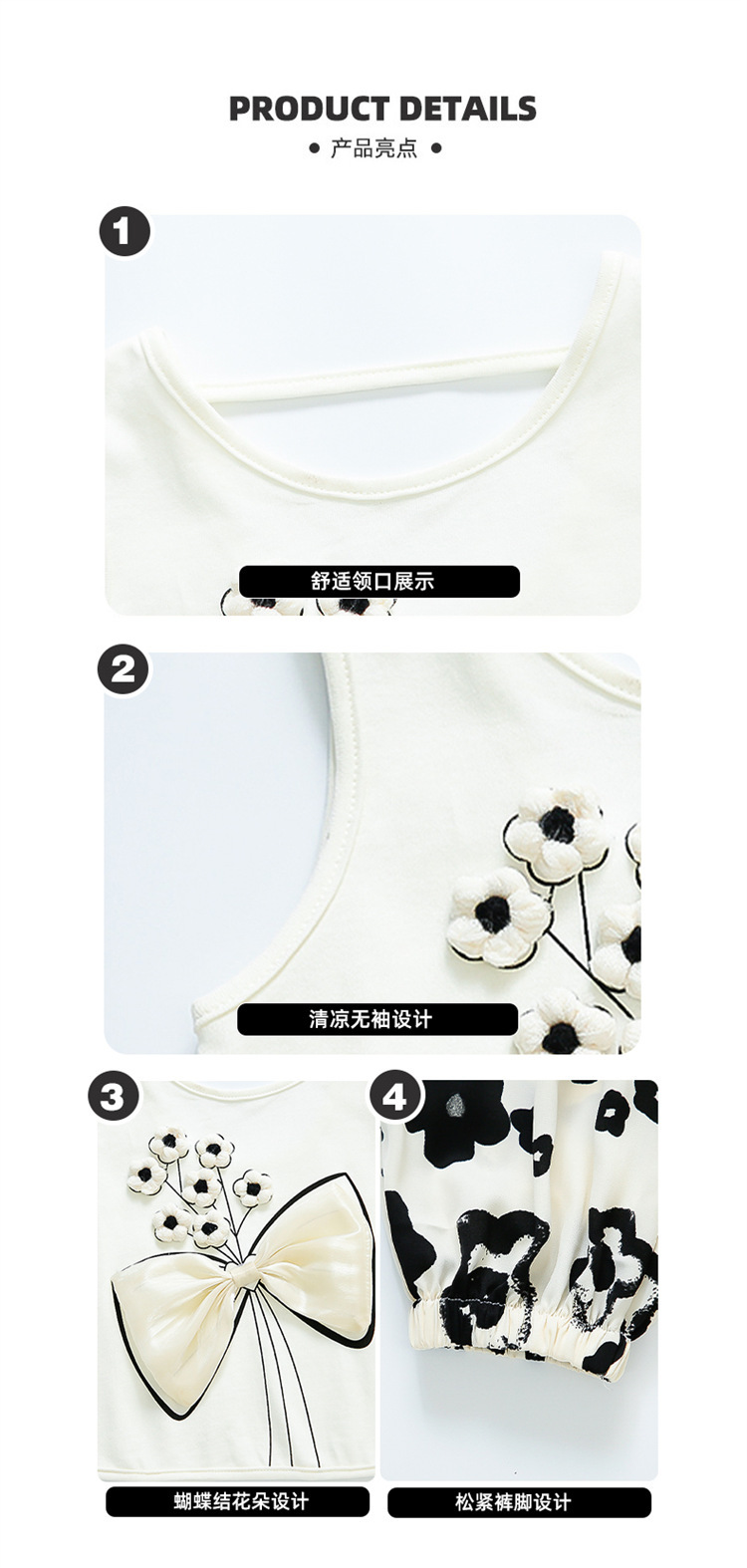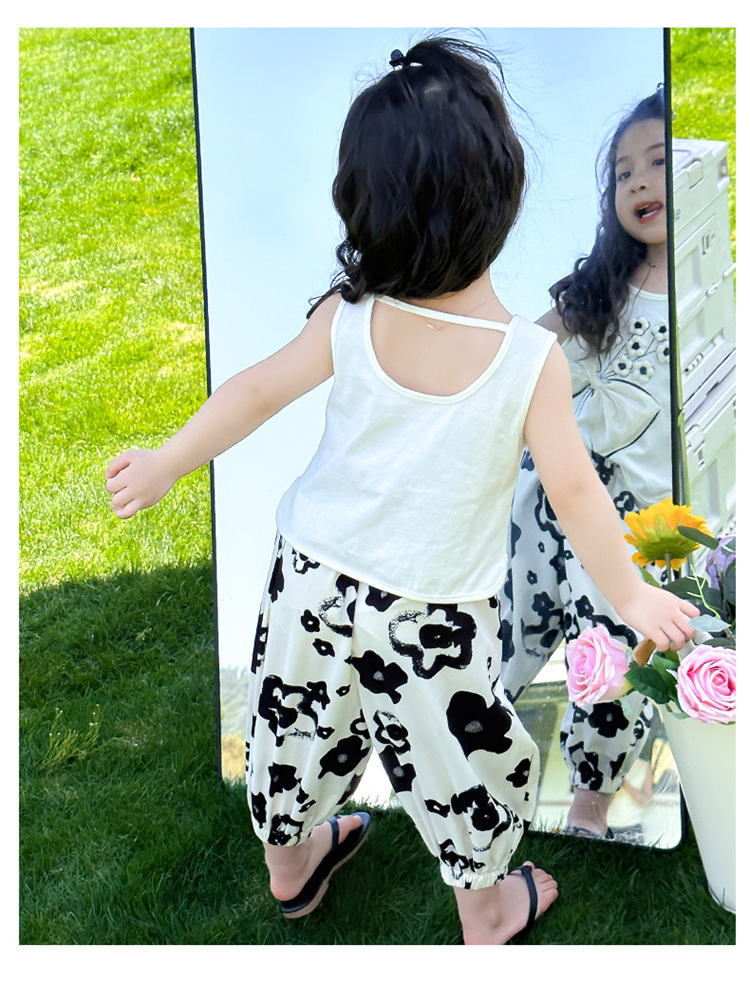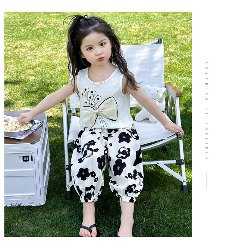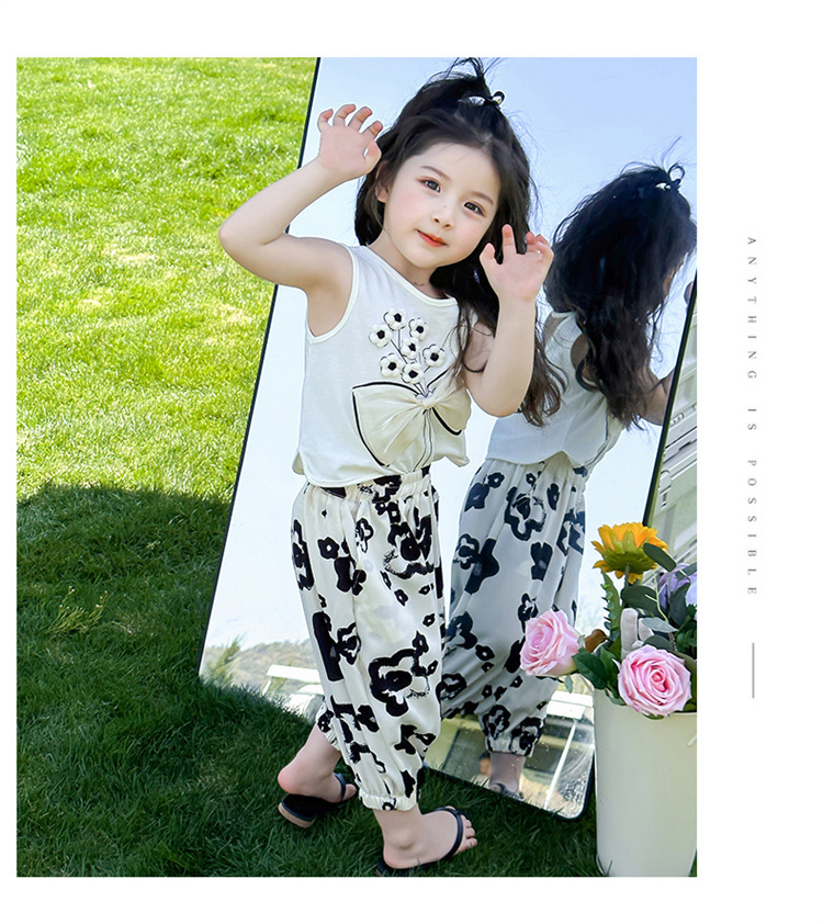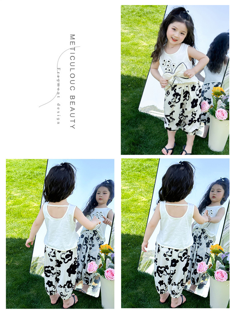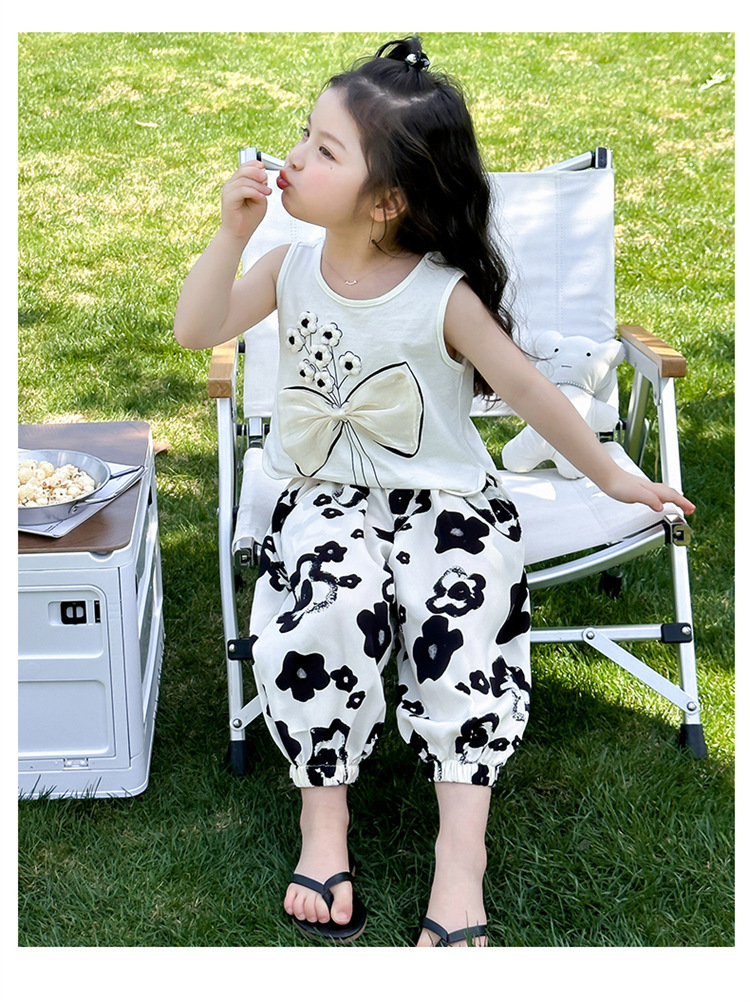 소녀의 활 꽃 세트 2025 여름 새로운 패션 소녀의 세련된 투피스 세트 어린이 여름 원피스스토어 가기