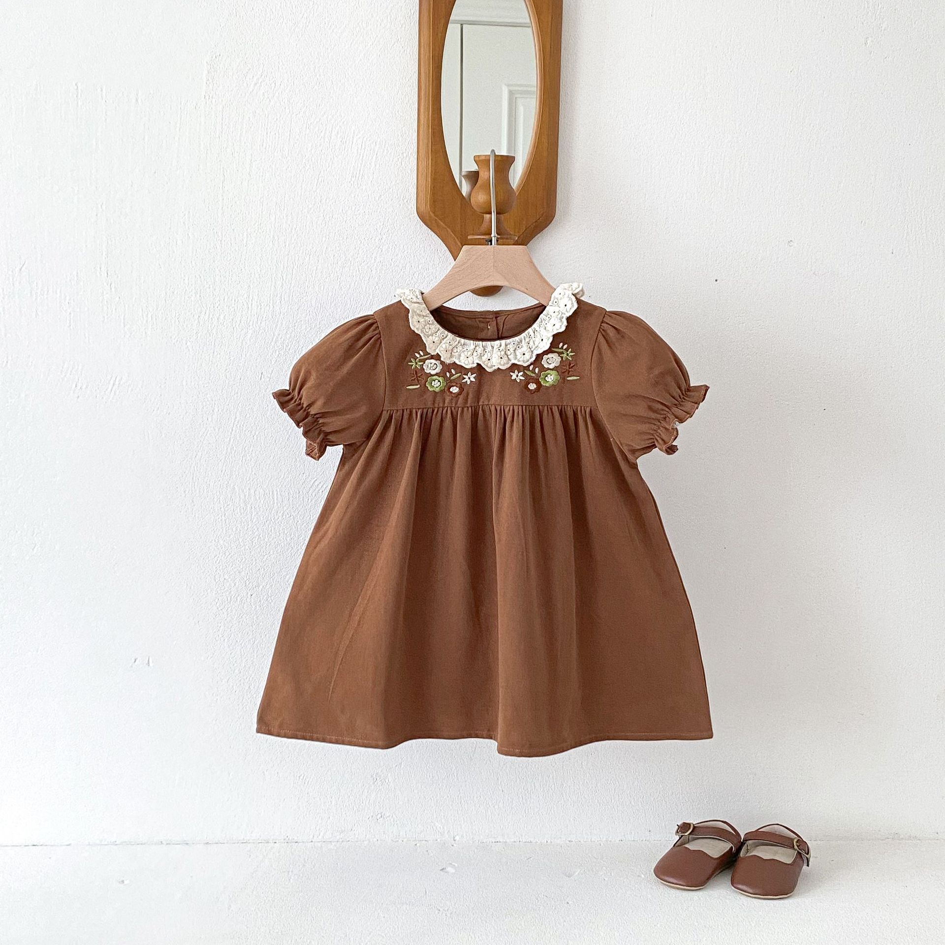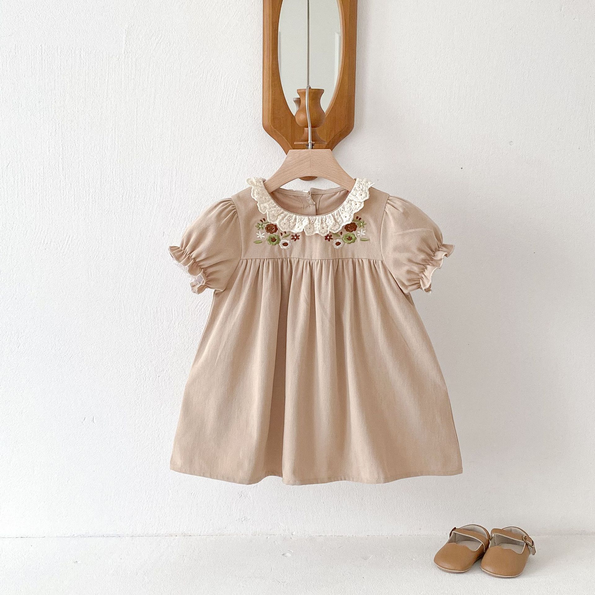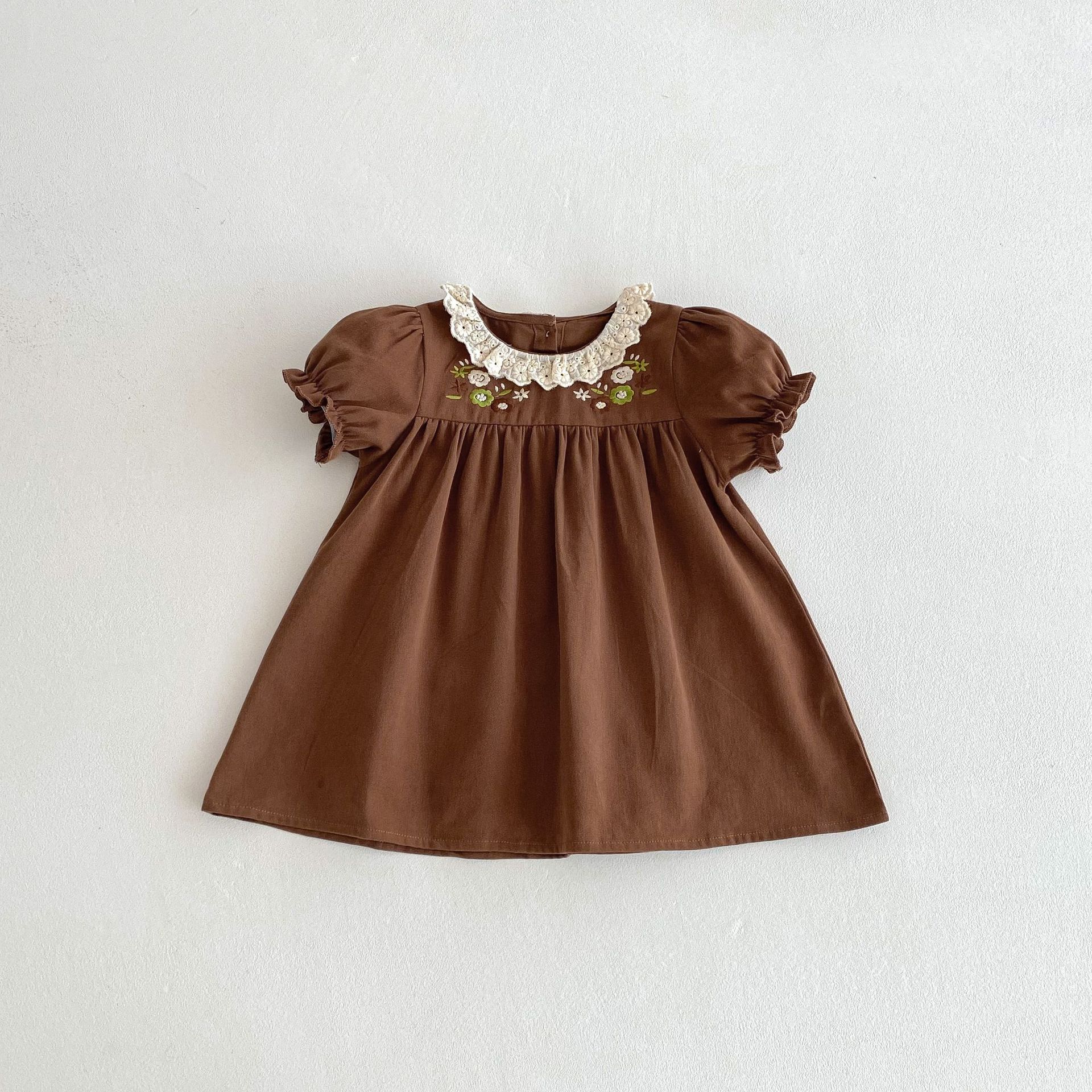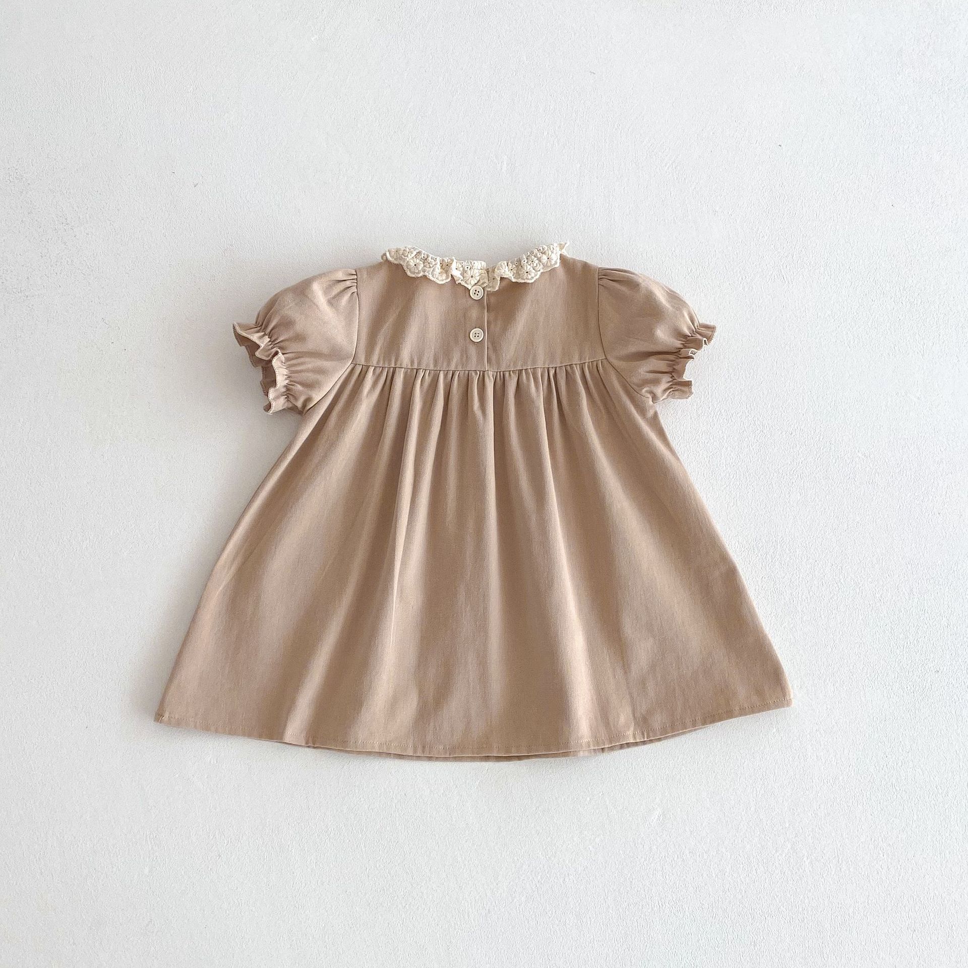 여자 여름 원피스 새 원피스 한국 스타일 어린이 레이스 칼라 외출을 위해 원피스 어린 소녀의 반팔 공주 자수스토어 가기