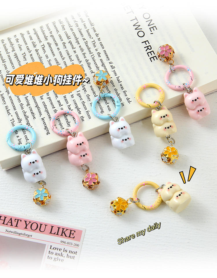 만화 강아지 3 차원 키 체인 펜던트 귀여운 달콤한 소녀 심장 강아지 키 링 펜던트 액세서리스토어 가기