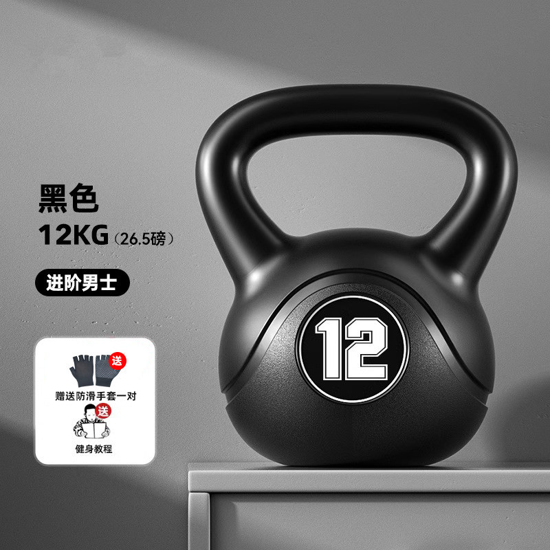 • ●블랙 12KG [고급 남성/전문 여성-장갑/튜토리얼 포함] PVC 하드 케틀벨●
