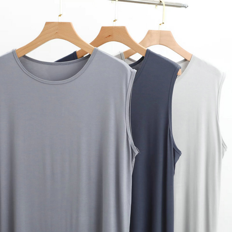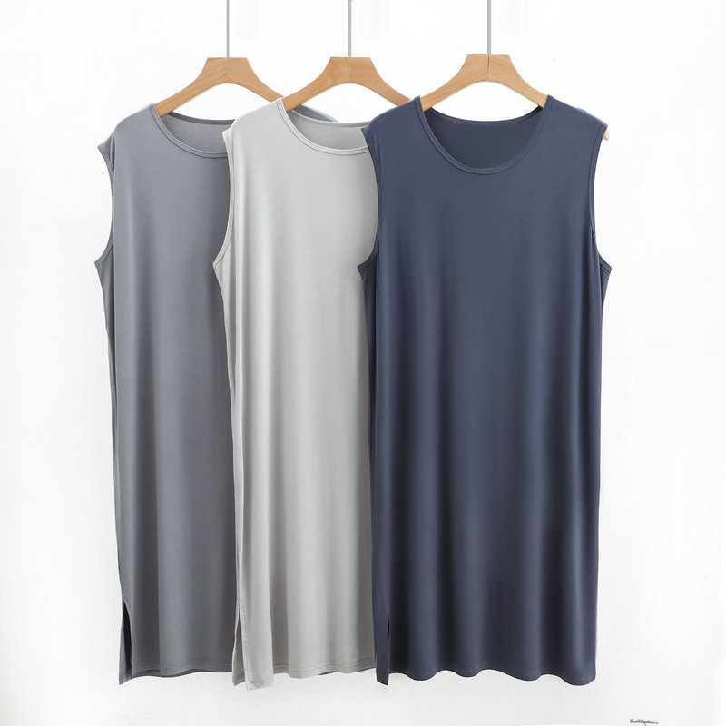 국경 간 남성 모달 파자마 민소매 조끼 긴 원피스 간단한 잠옷 원피스 느슨한 편안한 홈 옷 목욕 가운스토어 가기