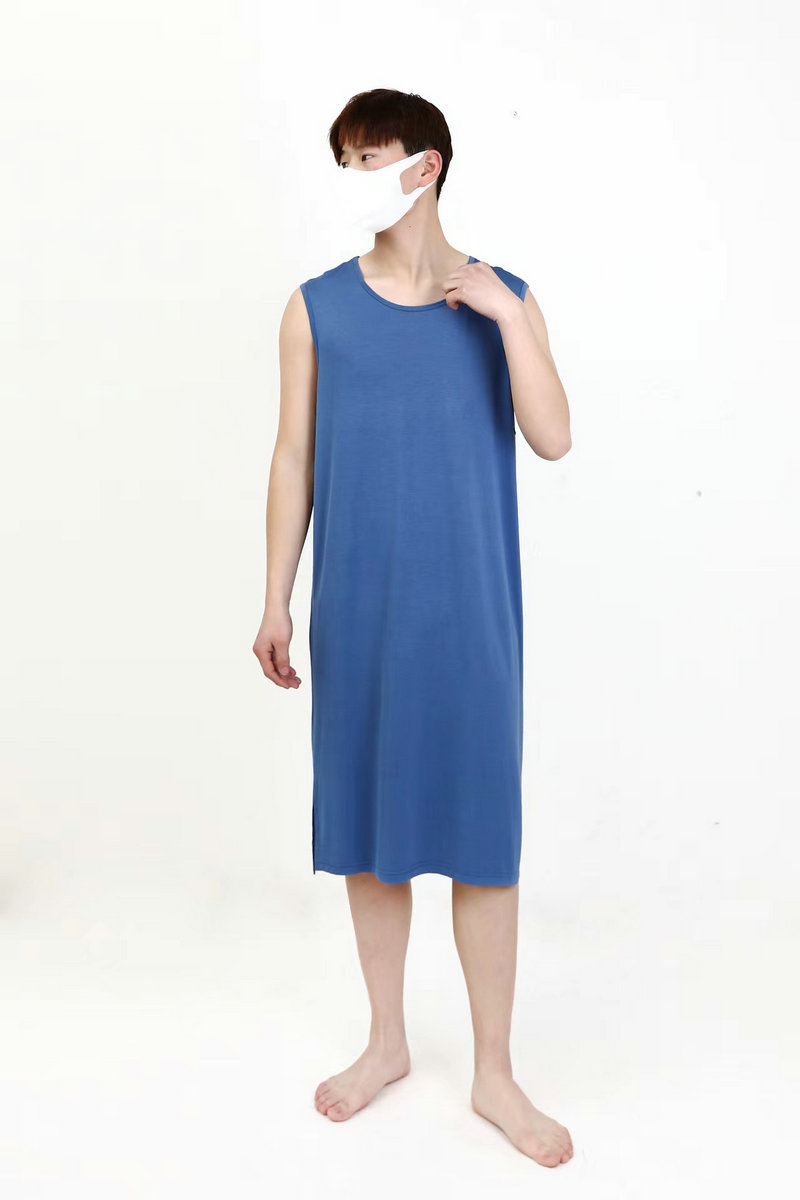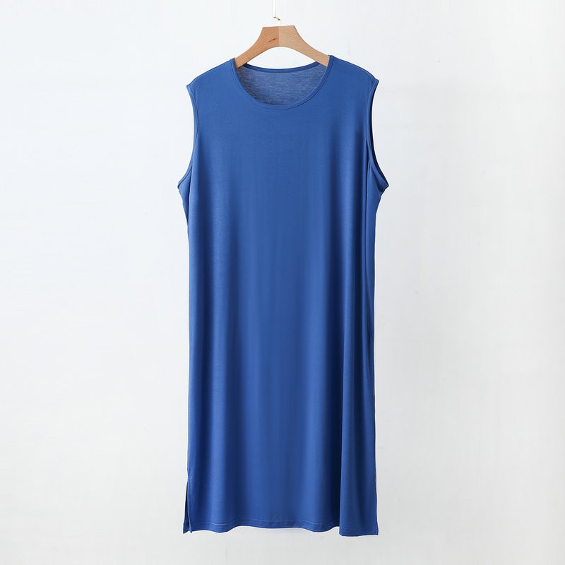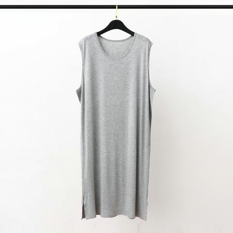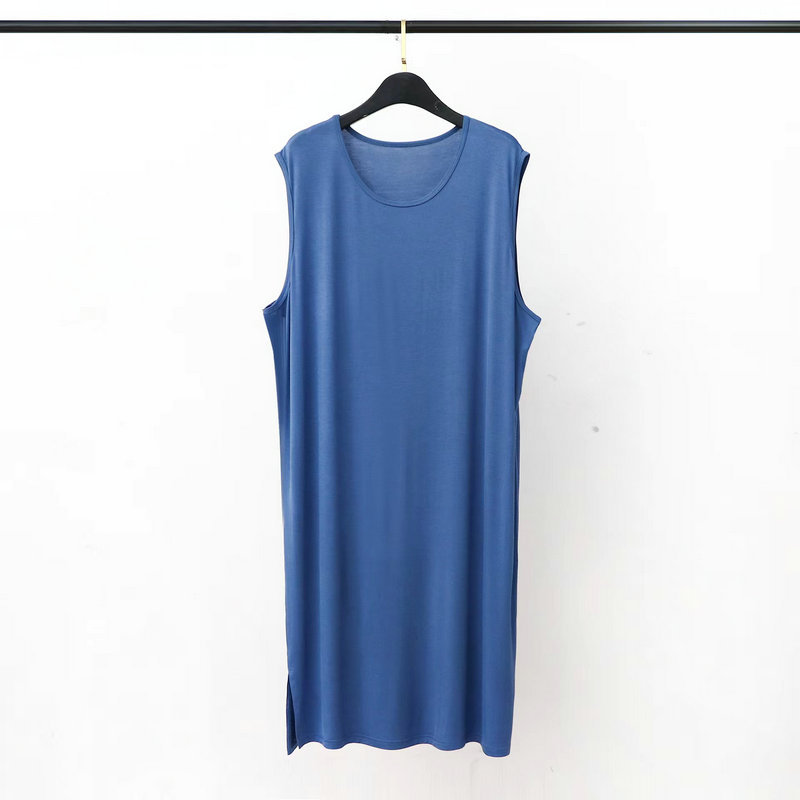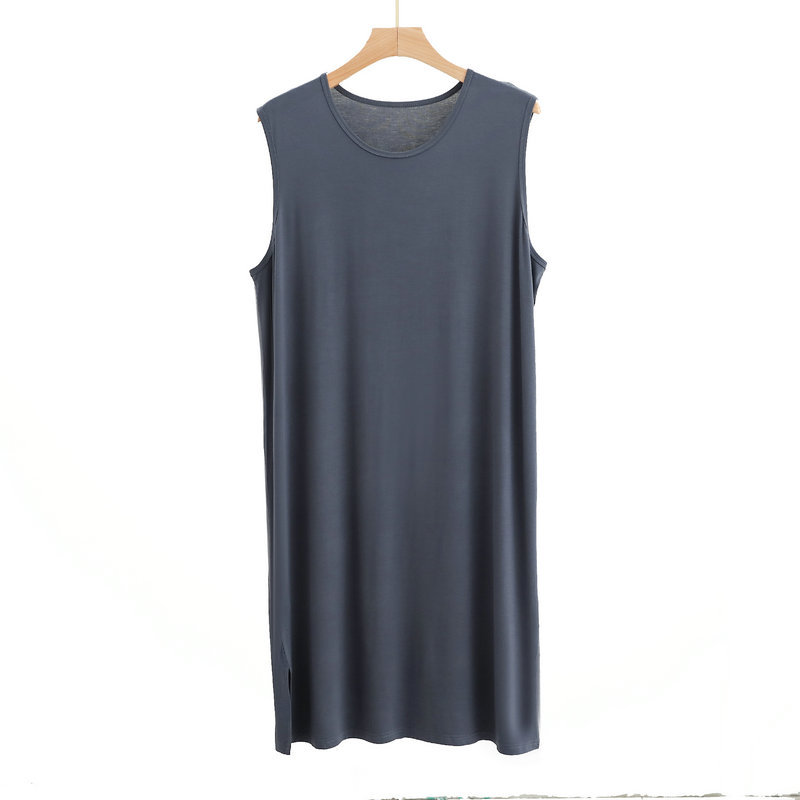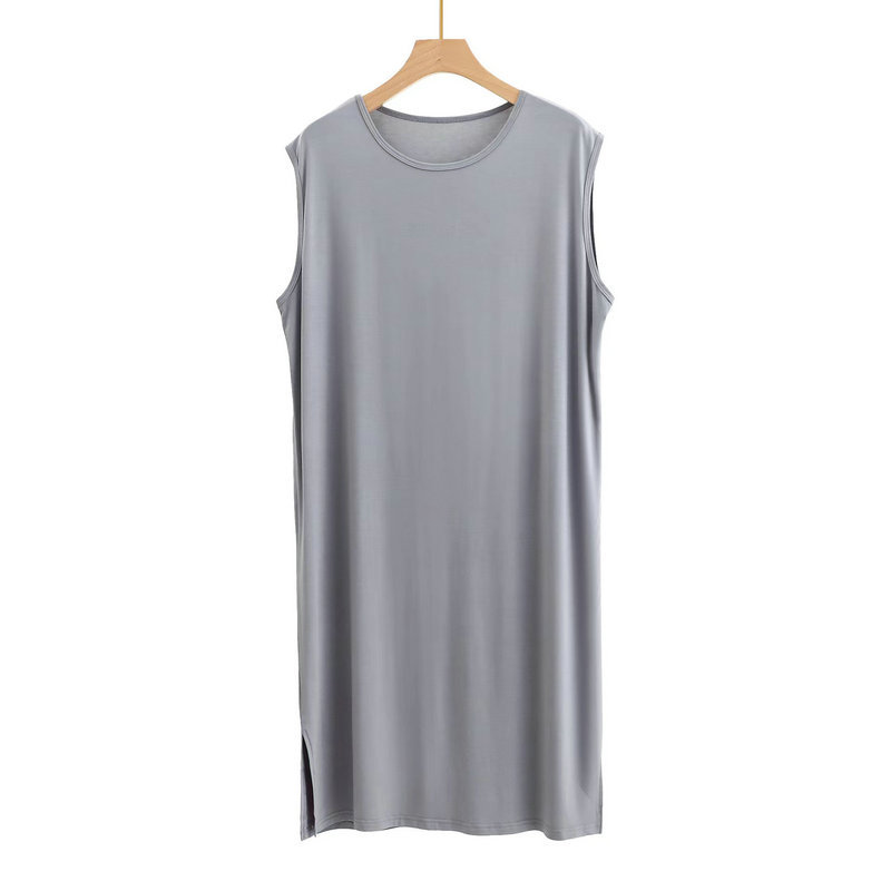 국경 간 남성 모달 파자마 민소매 조끼 긴 원피스 간단한 잠옷 원피스 느슨한 편안한 홈 옷 목욕 가운