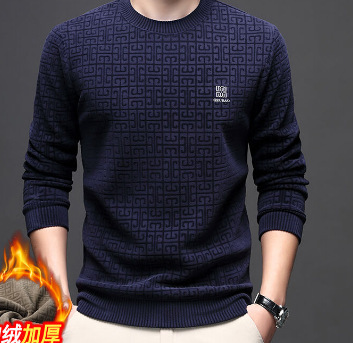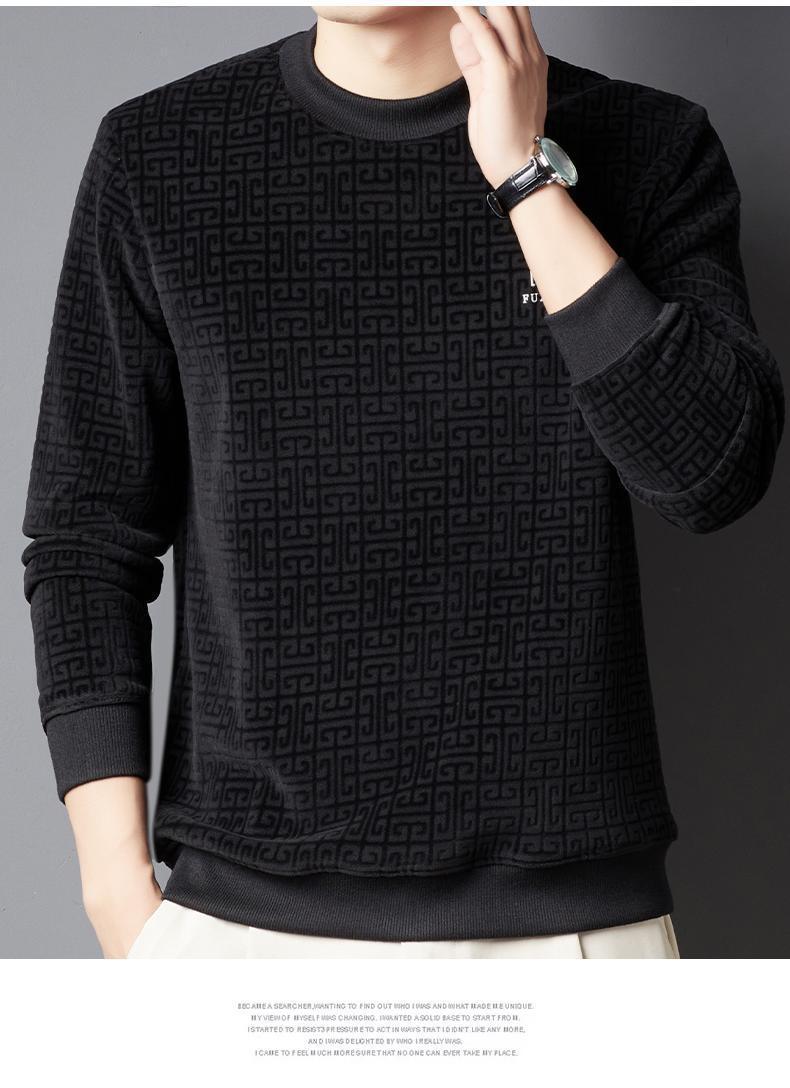 중년 및 노인 남성을위한 새로운 가을, 겨울 따뜻한 라운드 넥 캐주얼 오리지널 벨벳 스웨트 셔츠 셔닐 남성복스토어 가기